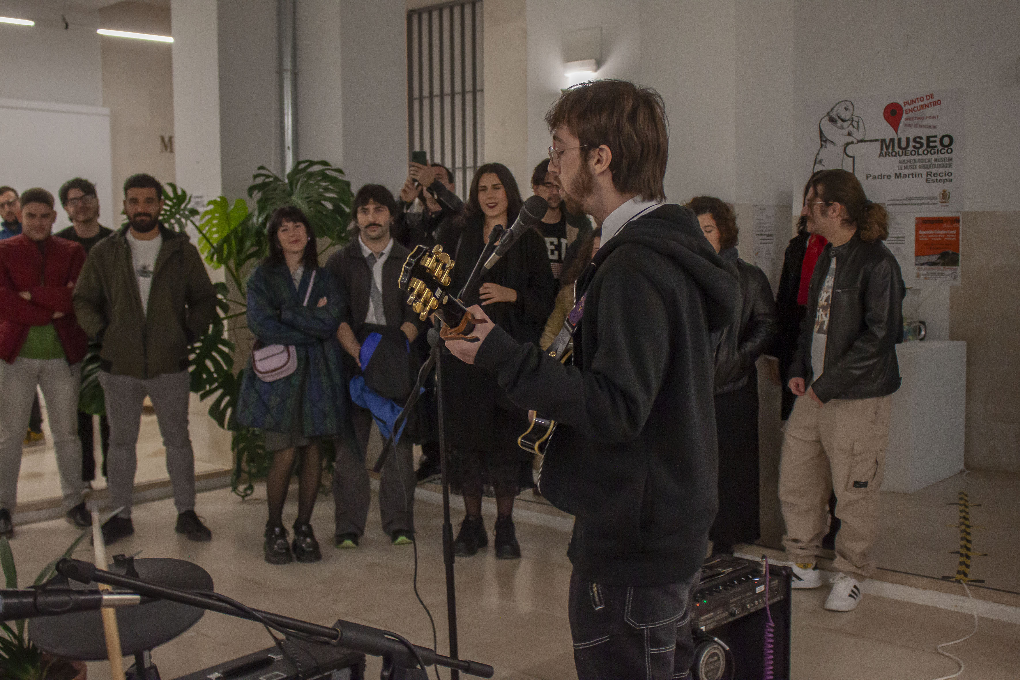 Anoche actuaron en el Museo Padre Martín Recio ante una audiencia reducida pero ecléctica, familiares, amigos y fans, que ya los tienen, disfrutaron del show de estos dos estepeños que con batería eléctrica, guitarra eléctrica y acústica marcarón una nueva señal musical entre los asistentes.