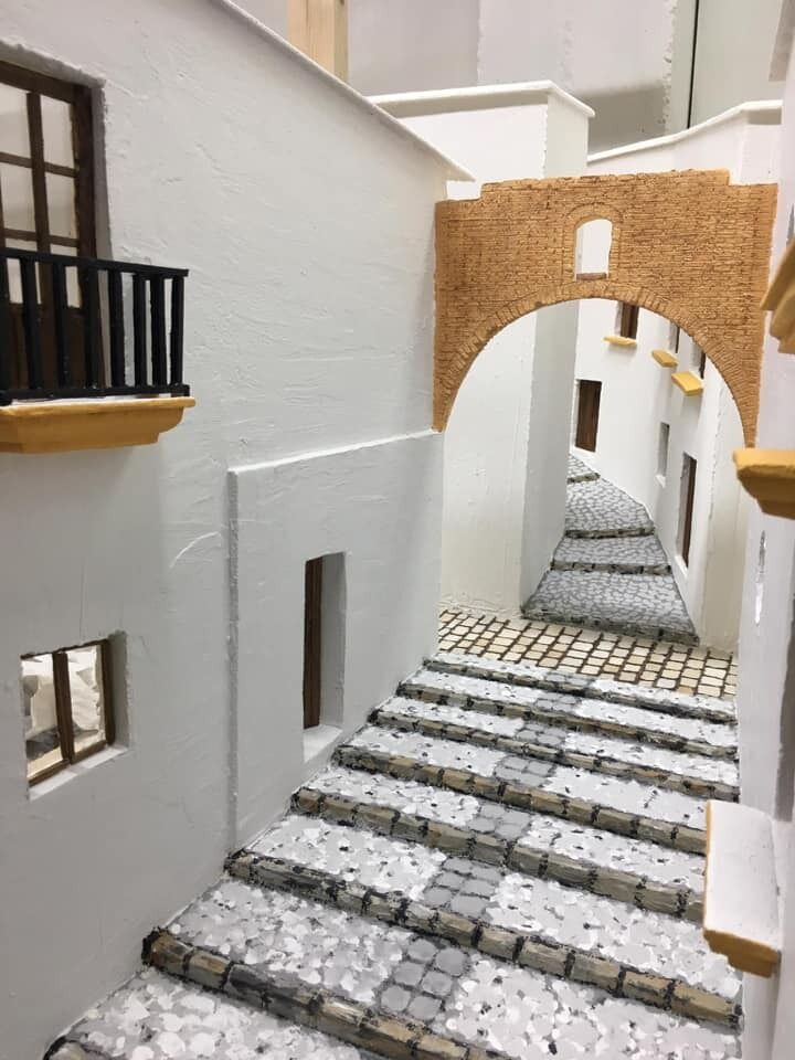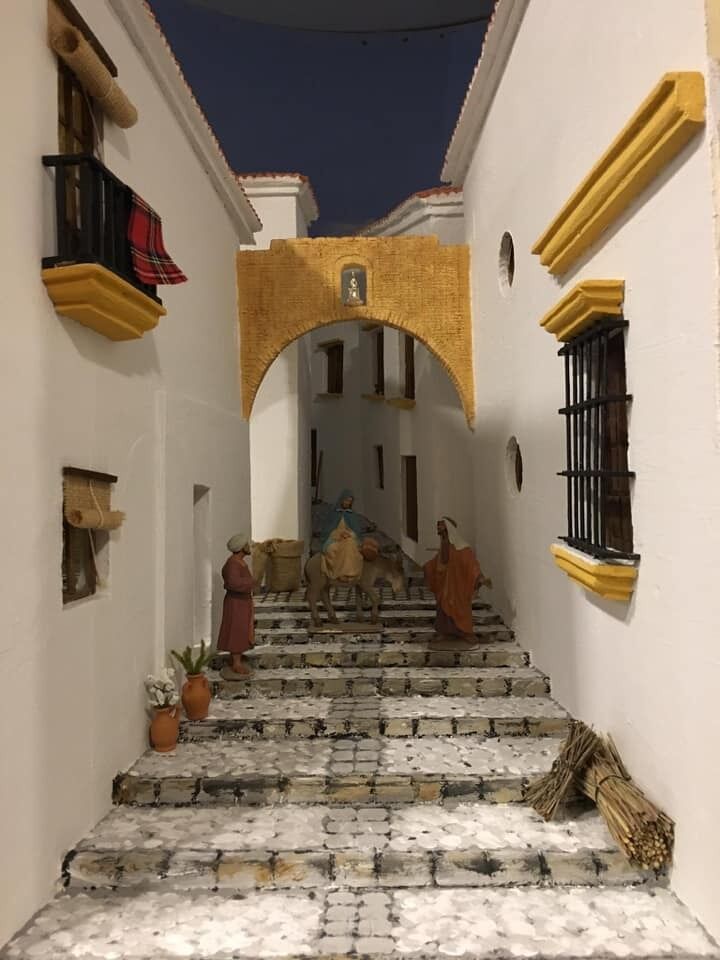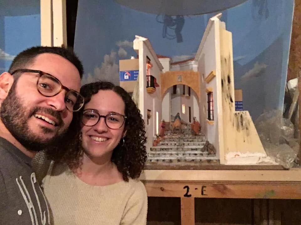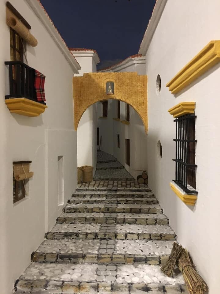 El joven Álvaro Quirós descendiente de Estepeños junto a su pareja Clara Borràs han realizado este diorama navideño inspirado en la calle Libertad de Estepa.