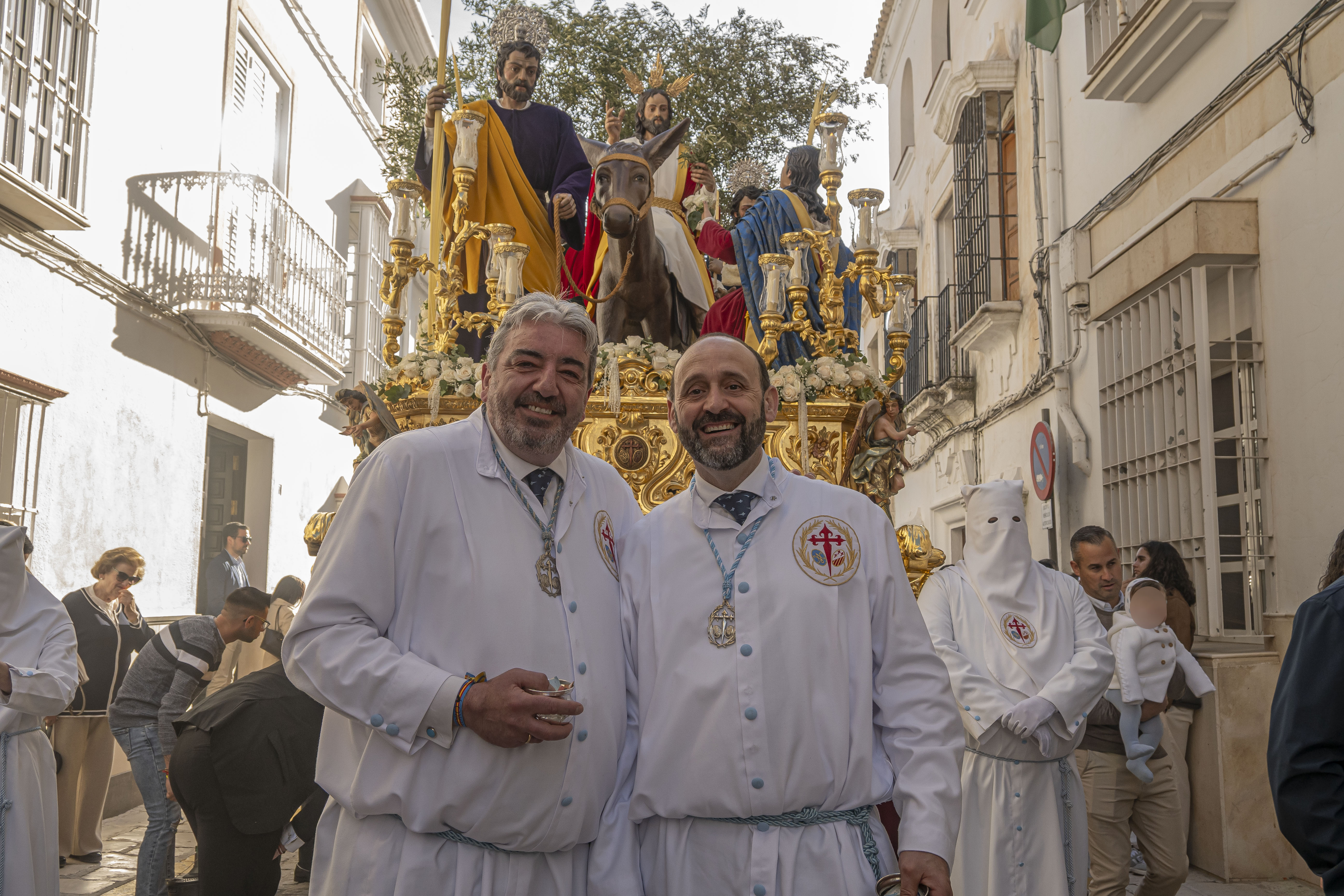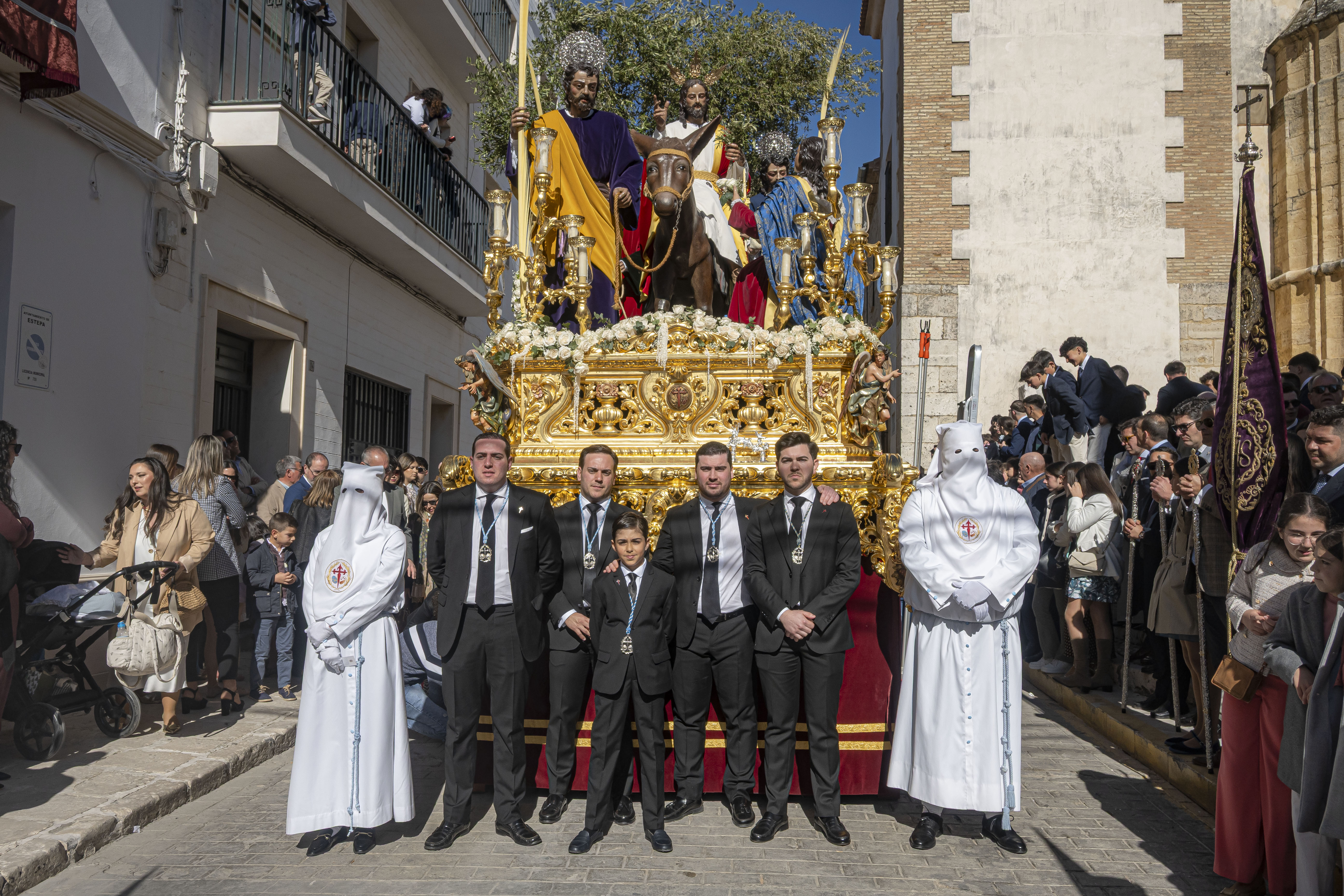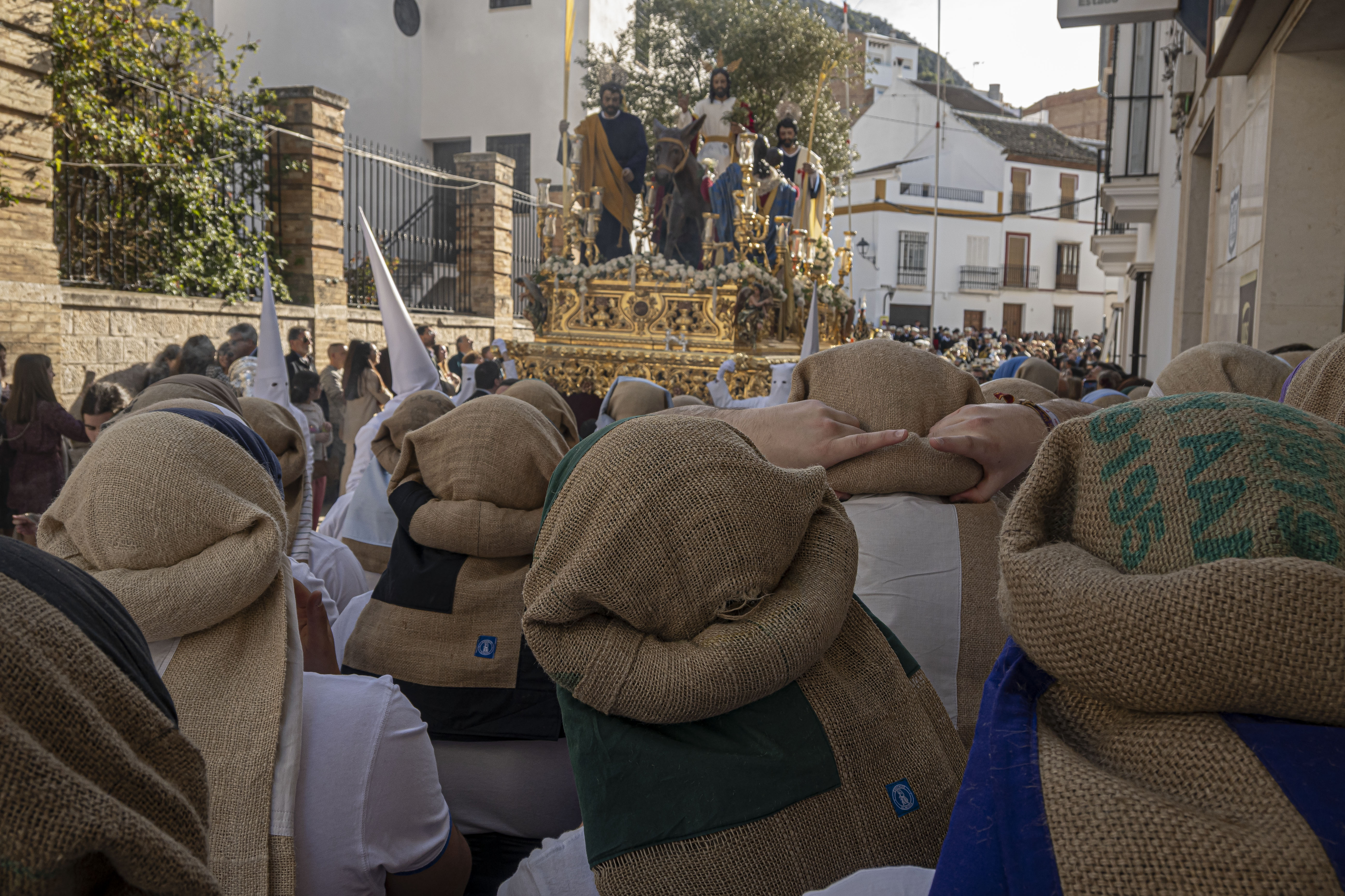 Pasos: Uno. 35 costaleros llevan el paso de La Borriquita