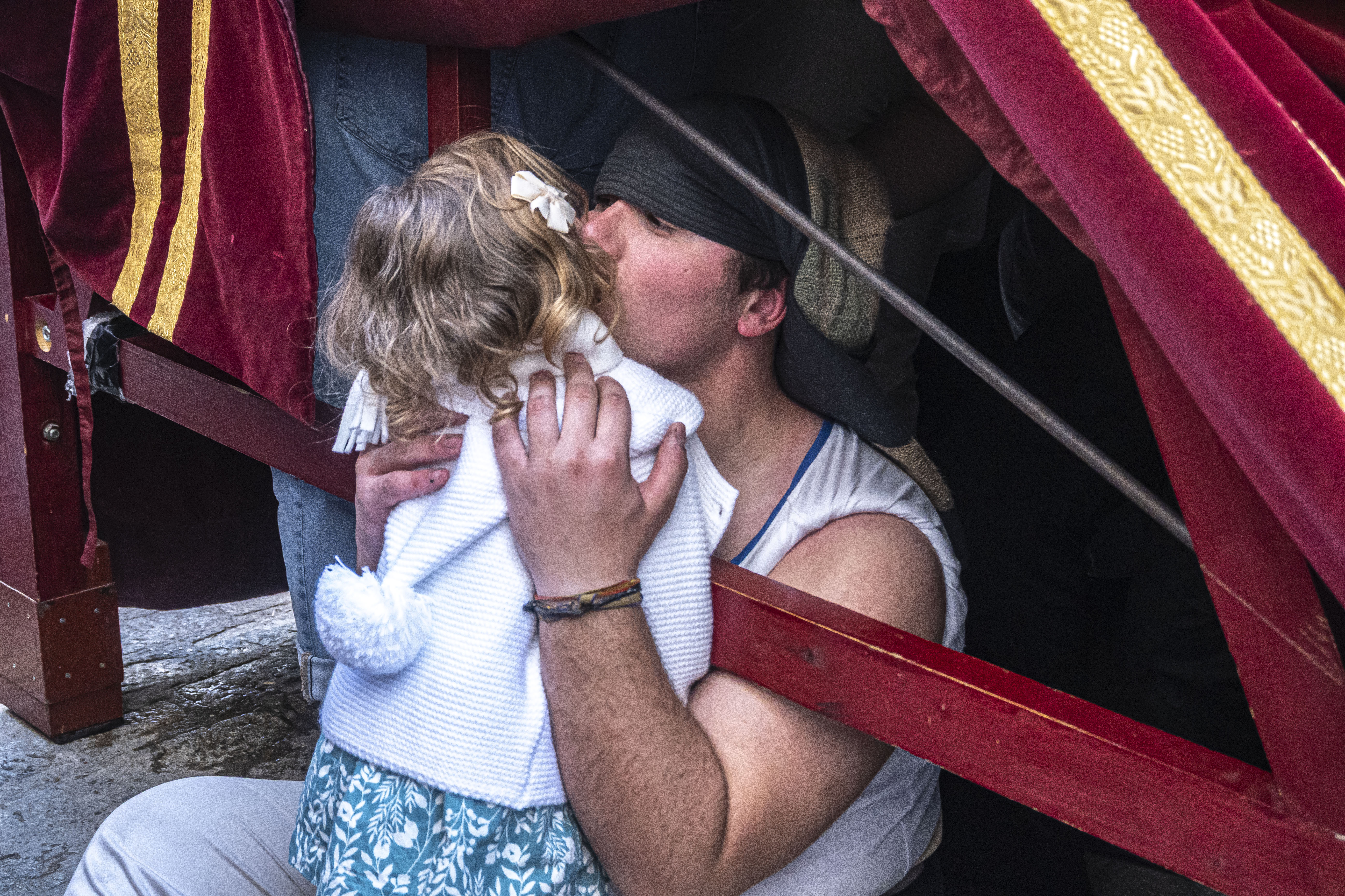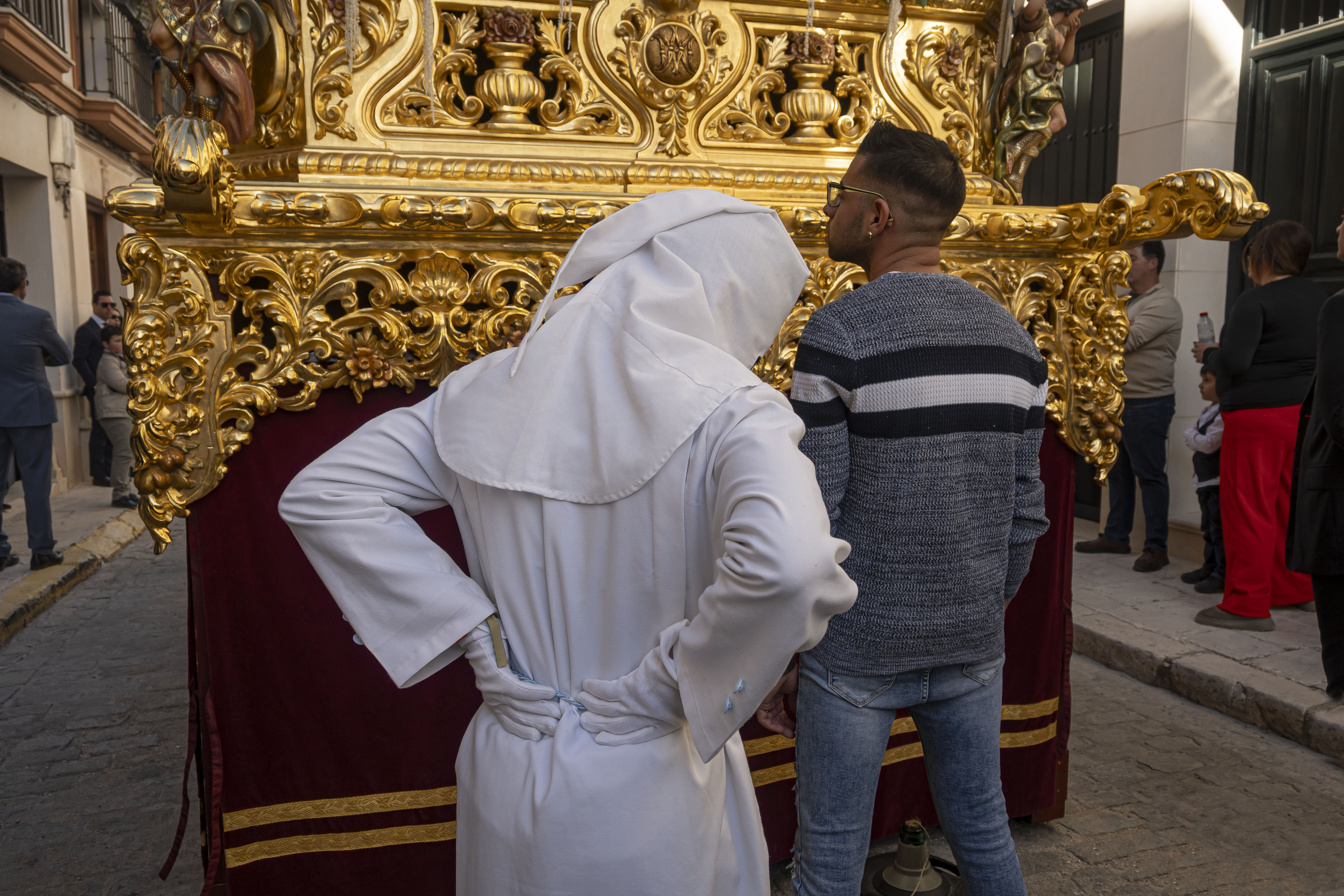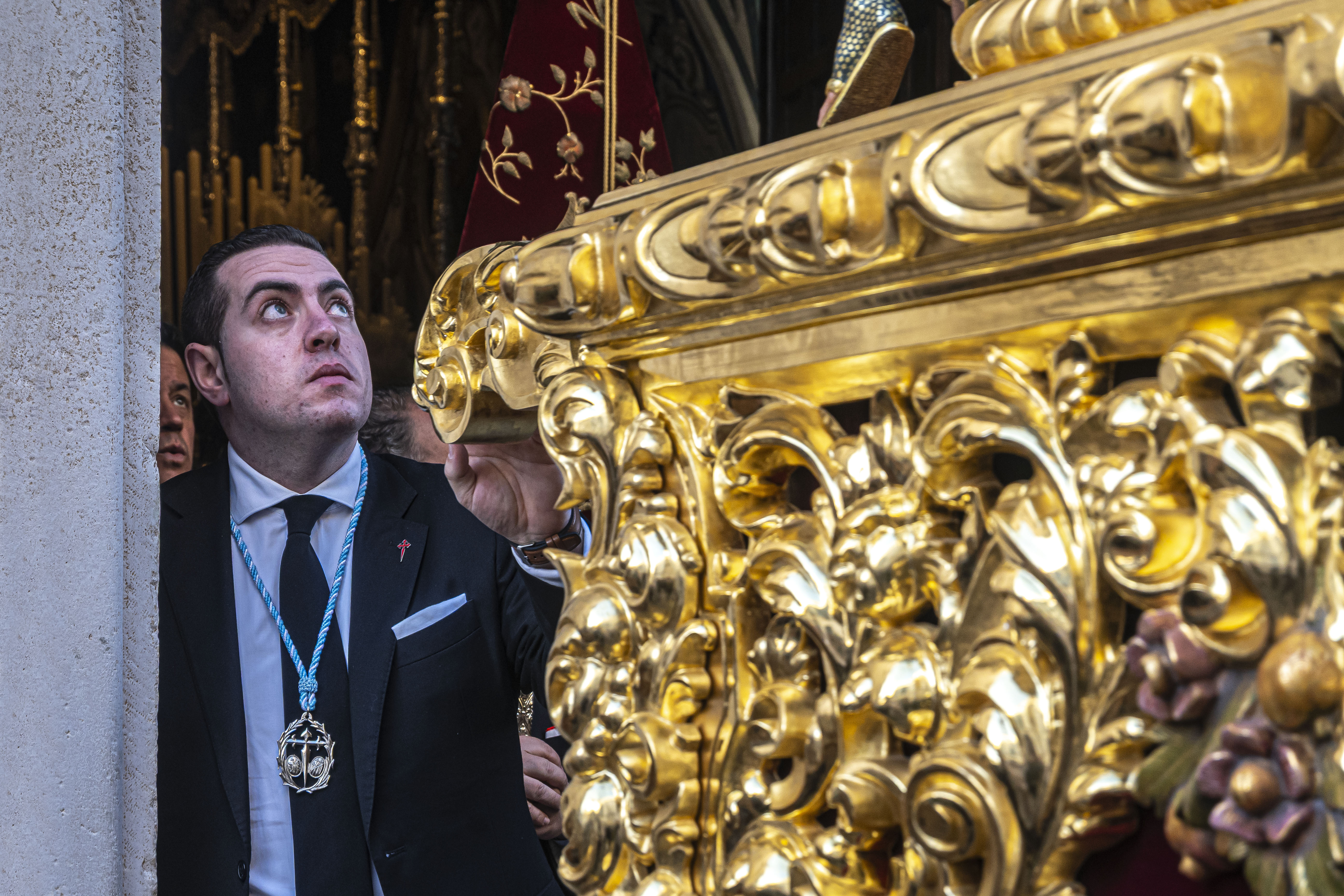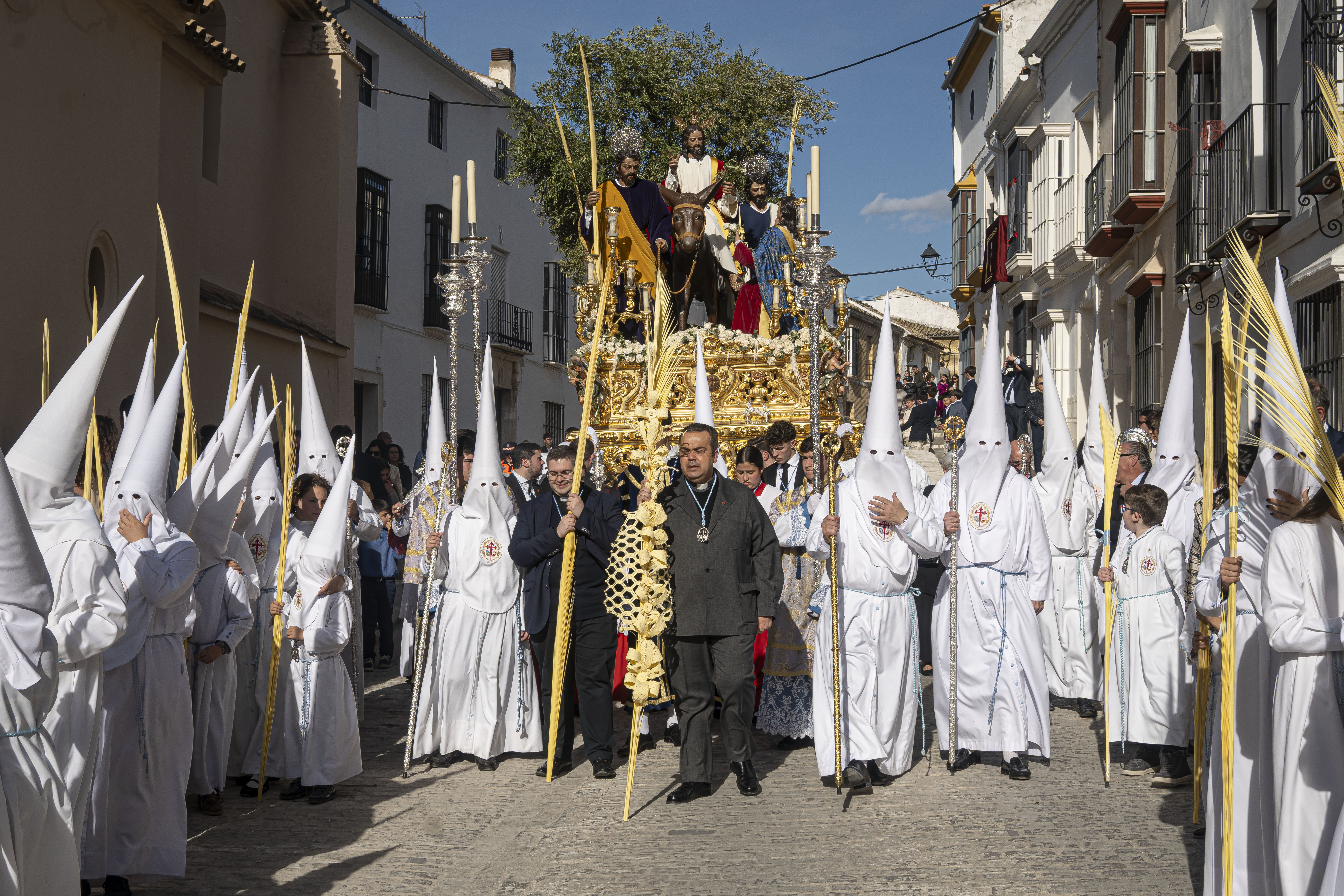 Pasos: Uno. 35 costaleros llevan el paso de La Borriquita
