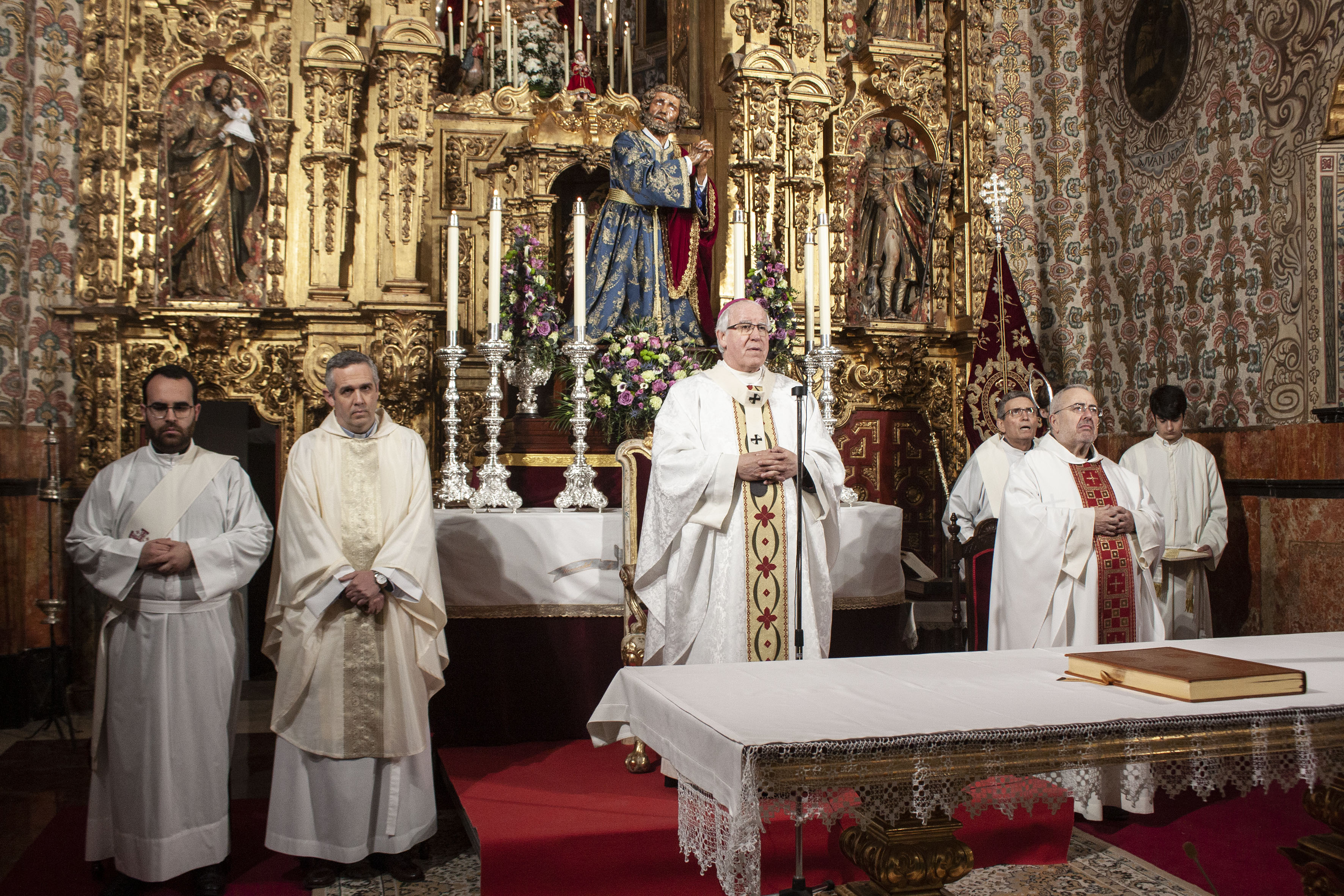 Una vez en la iglesia de la Asunción, el arzobispo procedió al ritual de llamada y apertura de la puerta de la iglesia. Monseñor Saiz Meneses, ofició una misa y finalmente posó con los miembros de la hermandad y autoridades.