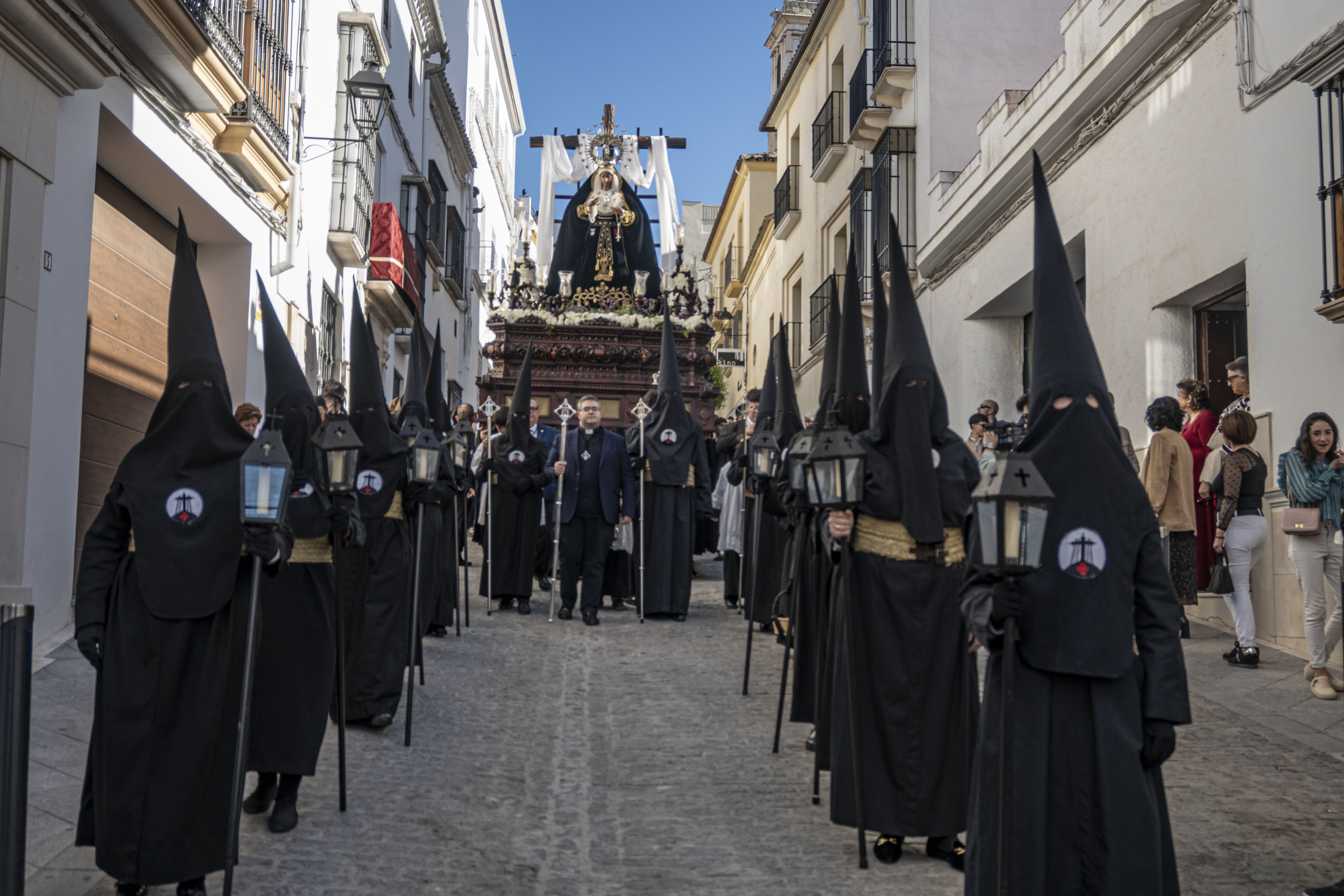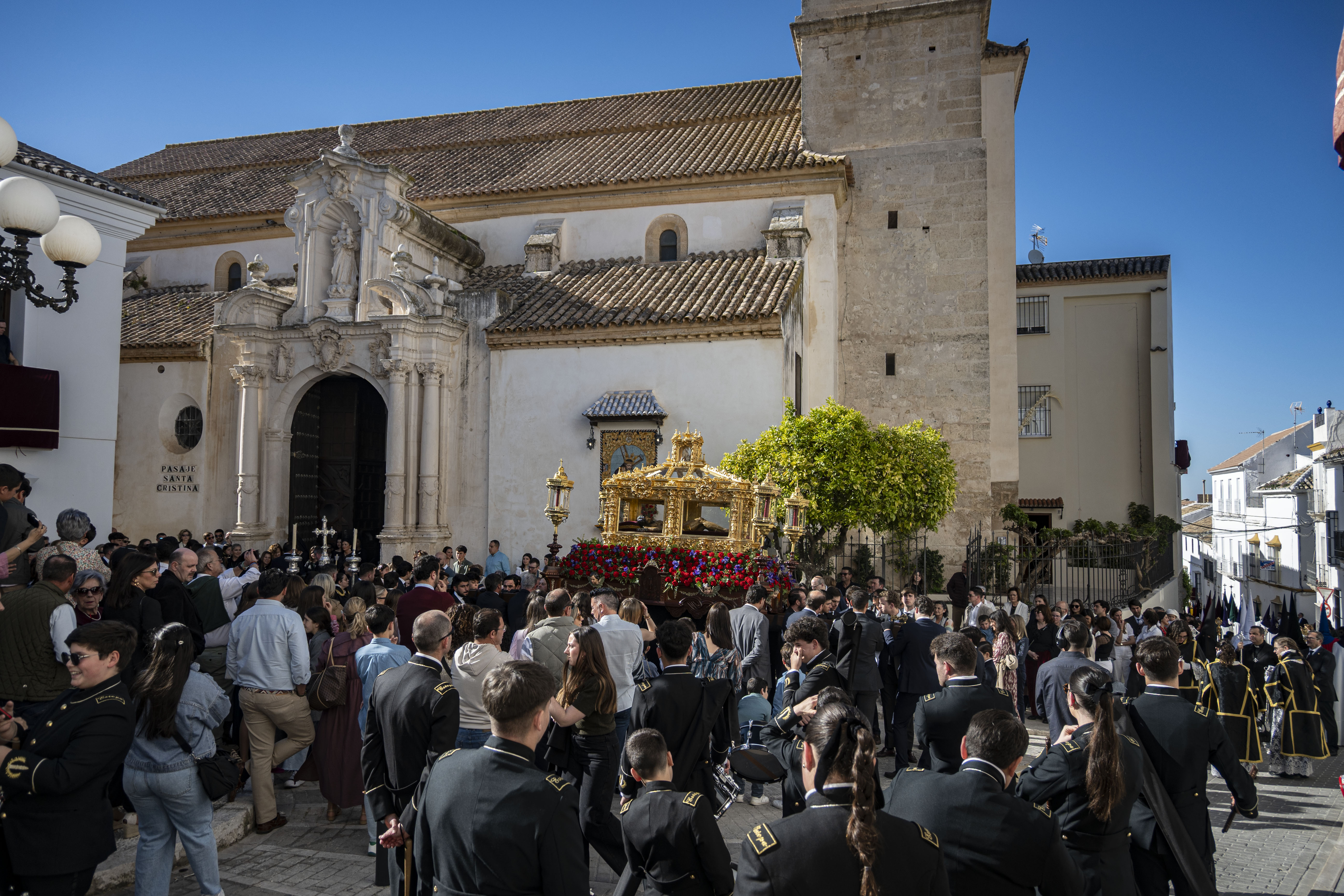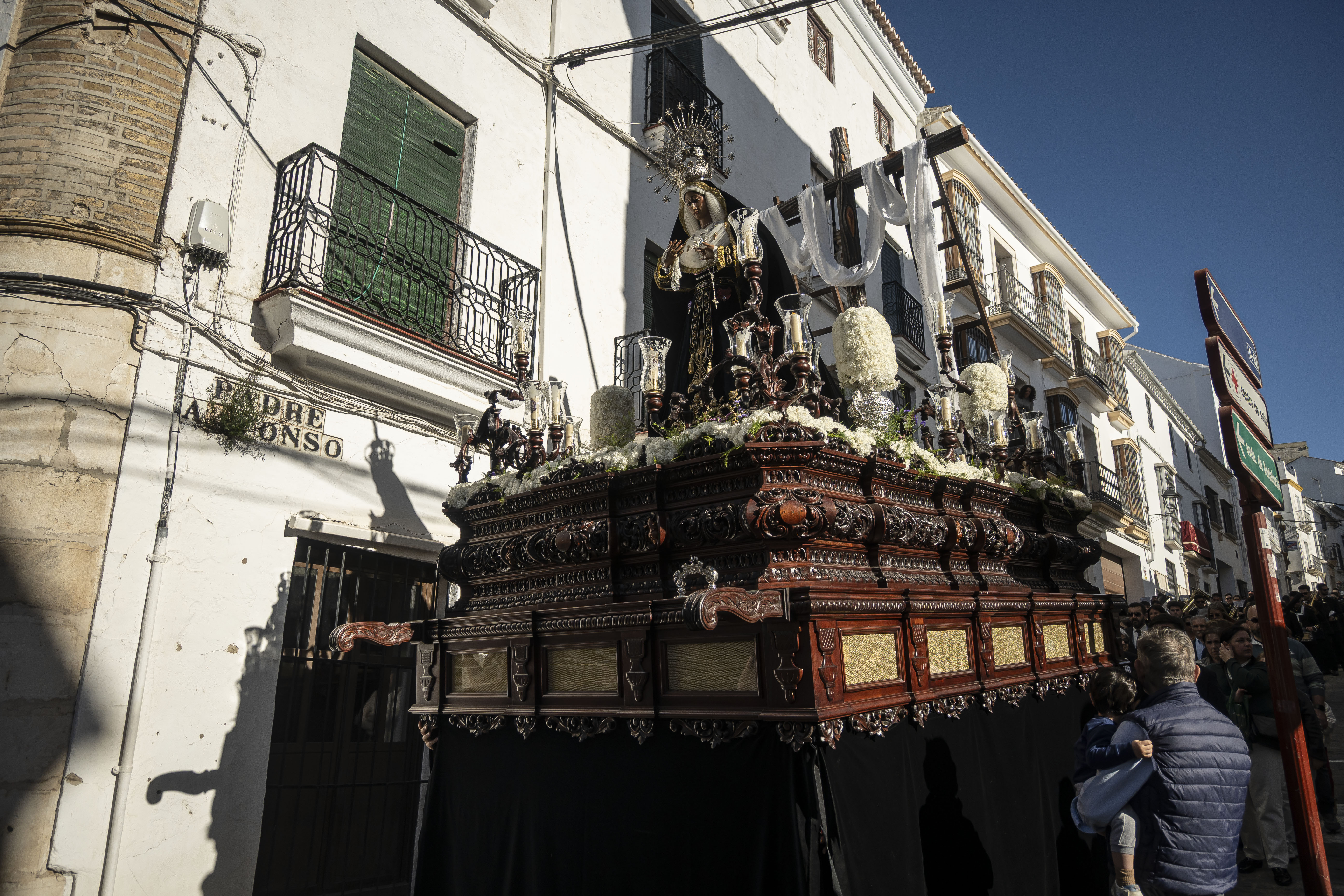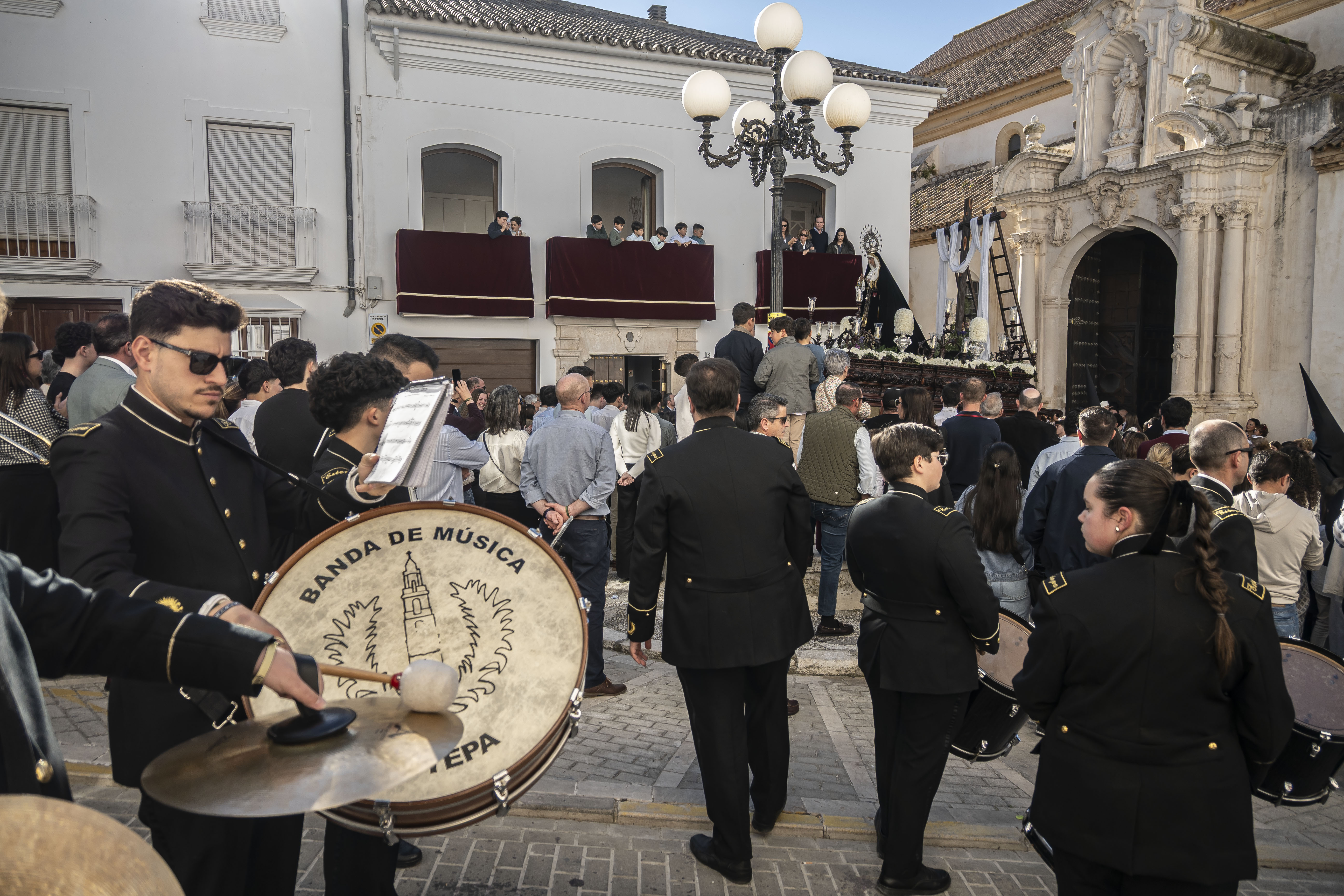 Música: La Urna de Cristo es acompañada por tambores fúnebres. El paso de la Virgen es acompañado por la Banda de Música de Estepa (BAME).
