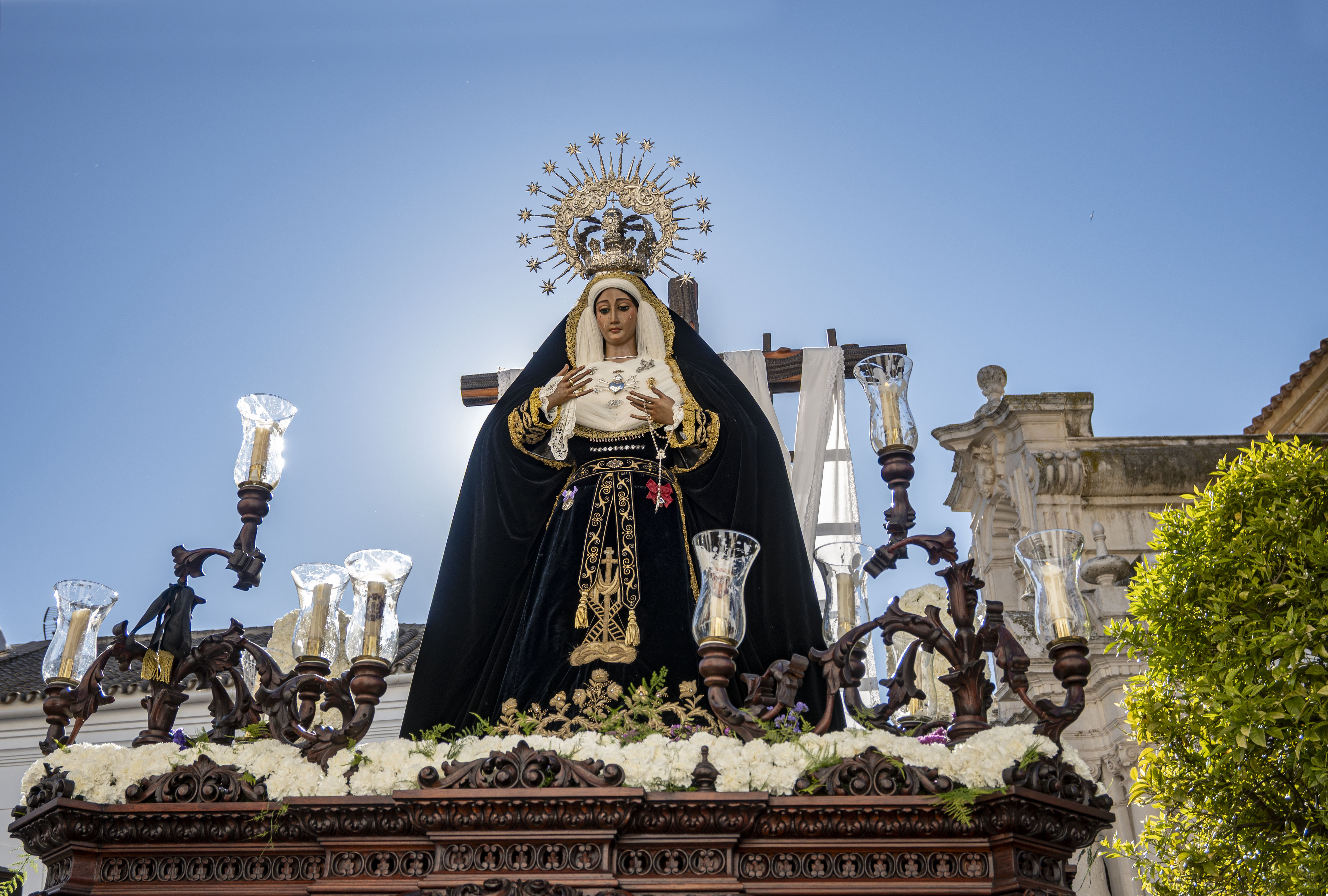 Pasos: Dos. El paso de la Urna de Cristo es portado a hombros por 16 hermanos y la Virgen de la Soledad calza 30 costaleros.