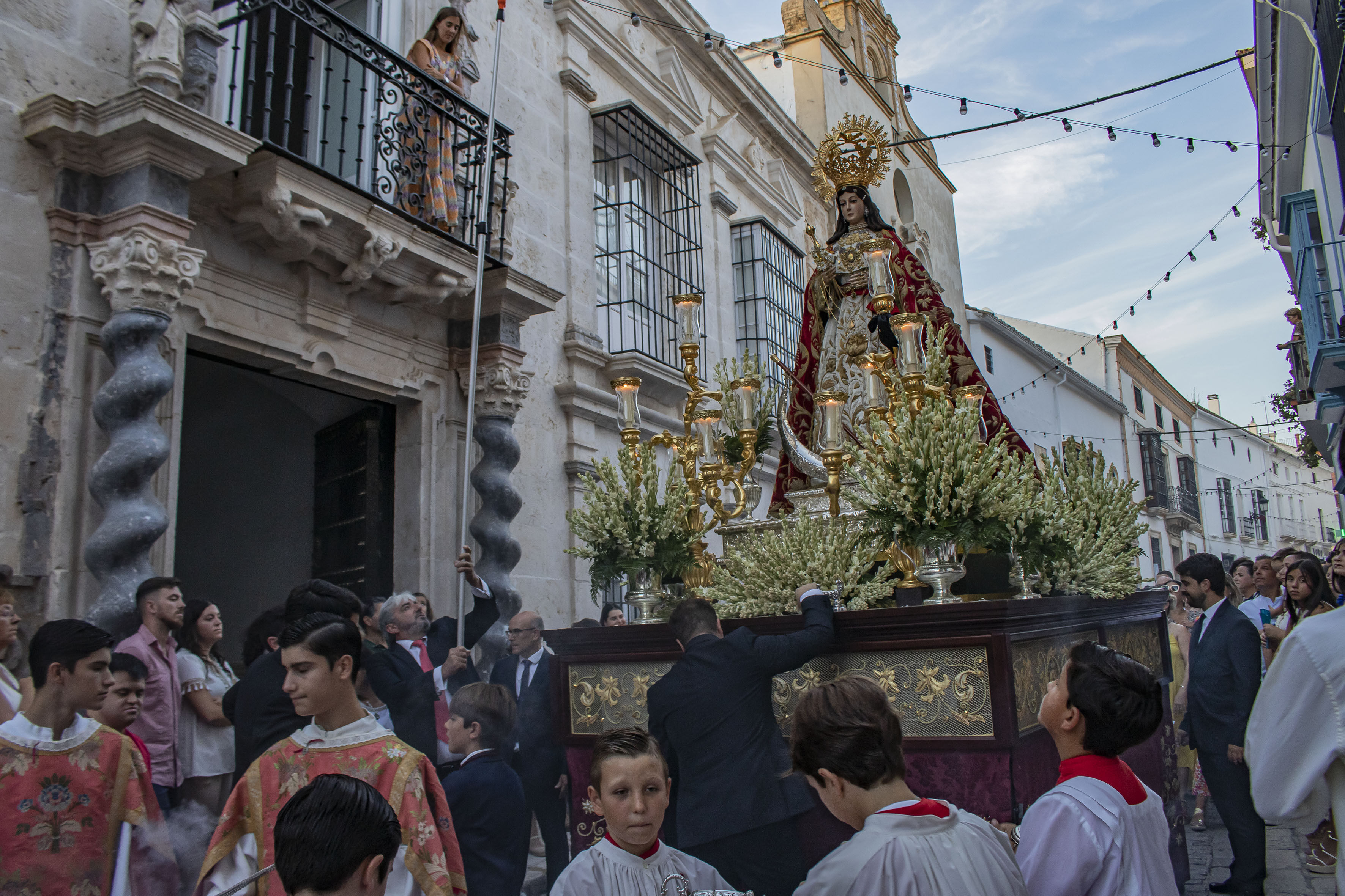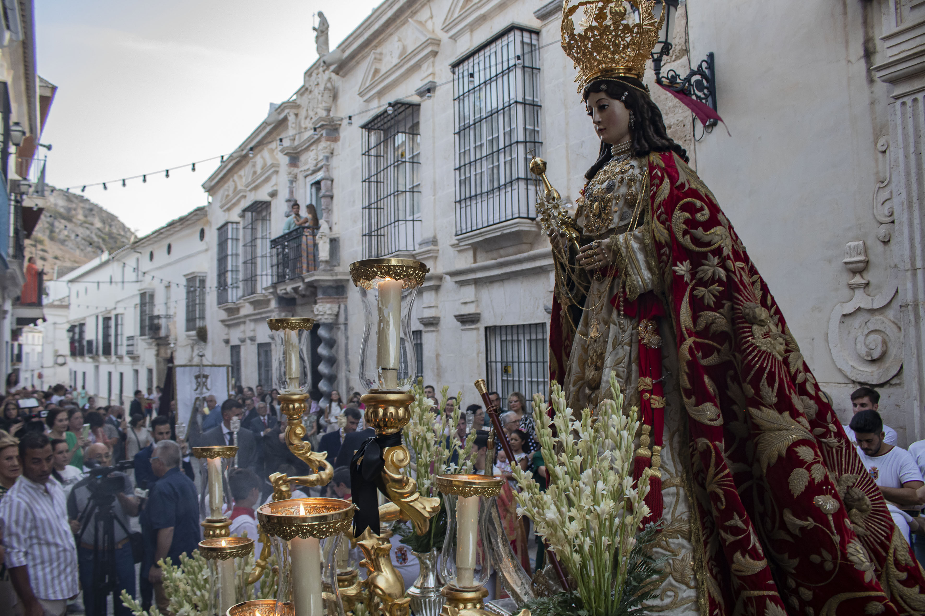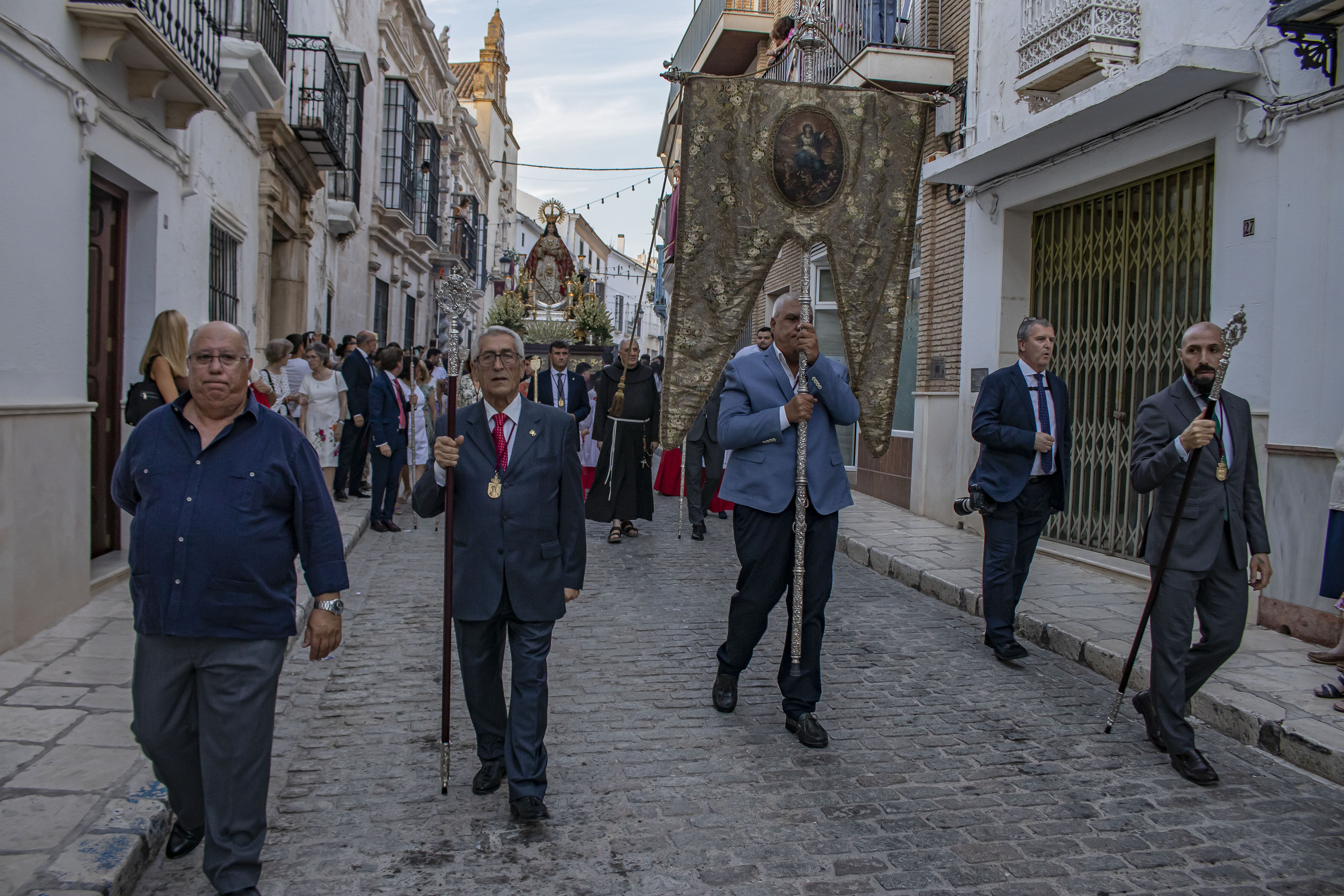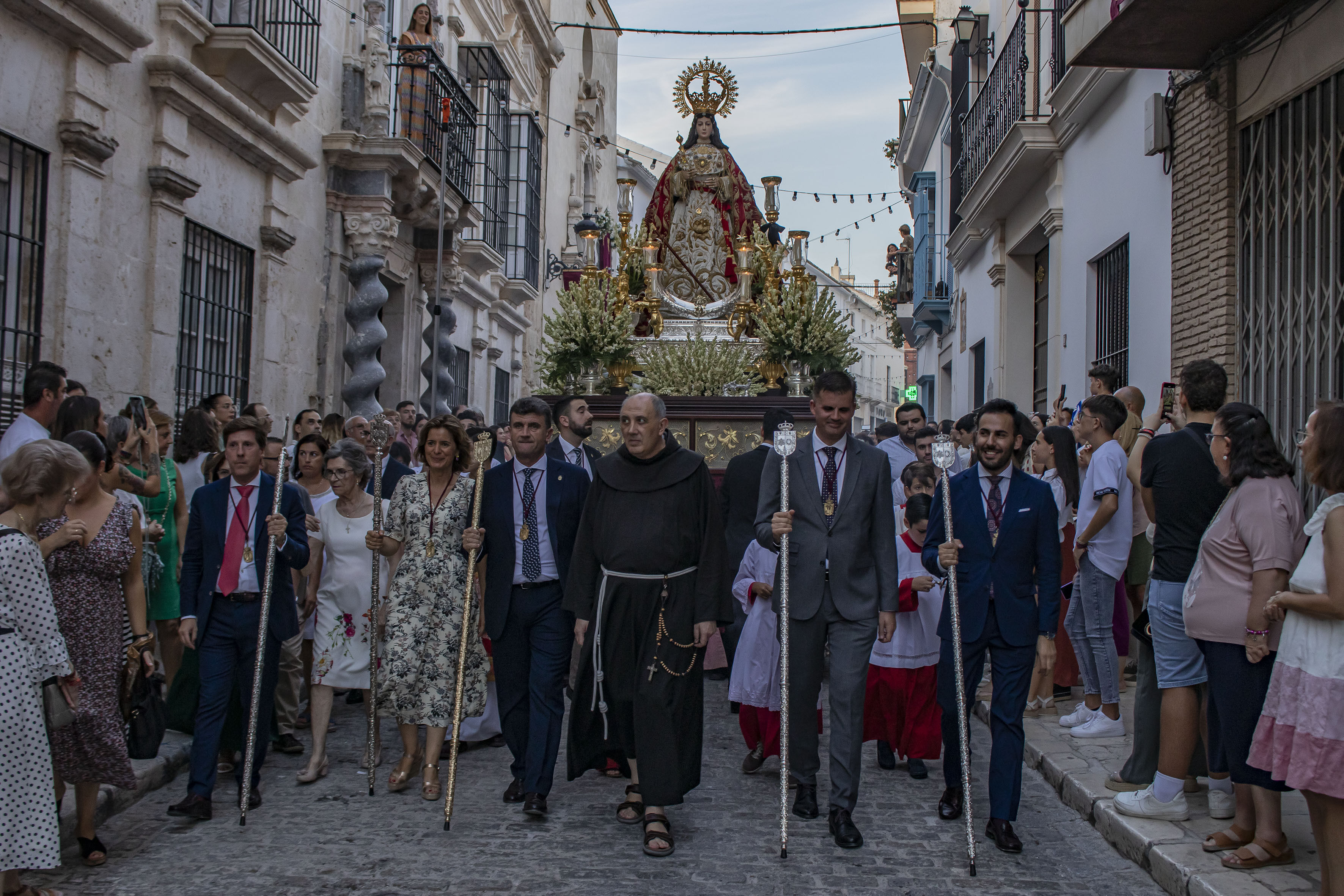Estepa ha celebrado el 15 de agosto, día de la patrona, día de la Virgen de la Asunción. Una fiesta nacional pero que en Estepa toma un marcado carácter especial, por la procesión de la virgen. Como ha sido habitual en los últimos años, la procesión ha salido a las ocho y media de la tarde de la iglesia de la titular y ha sido acompañada en su primer tramo por el IX Marqués de Cerverales, Rafael de Alcaraz y Baillo junto al alcalde de Estepa, Antonio Jesús Muñoz Quirós, el hermano mayor de la hermandad, Moisés Caballero Páez y el franciscano Fray Dionisio.