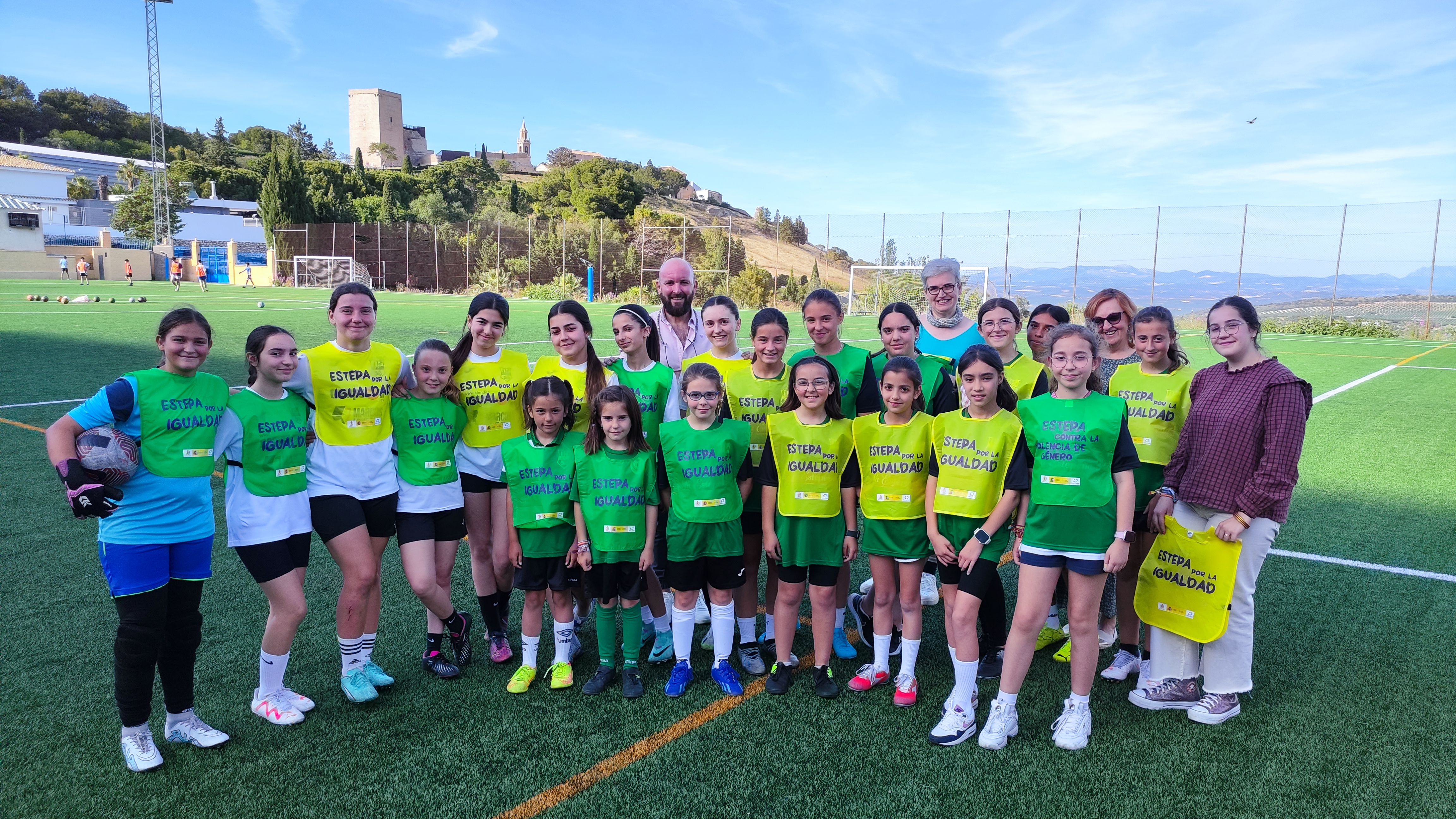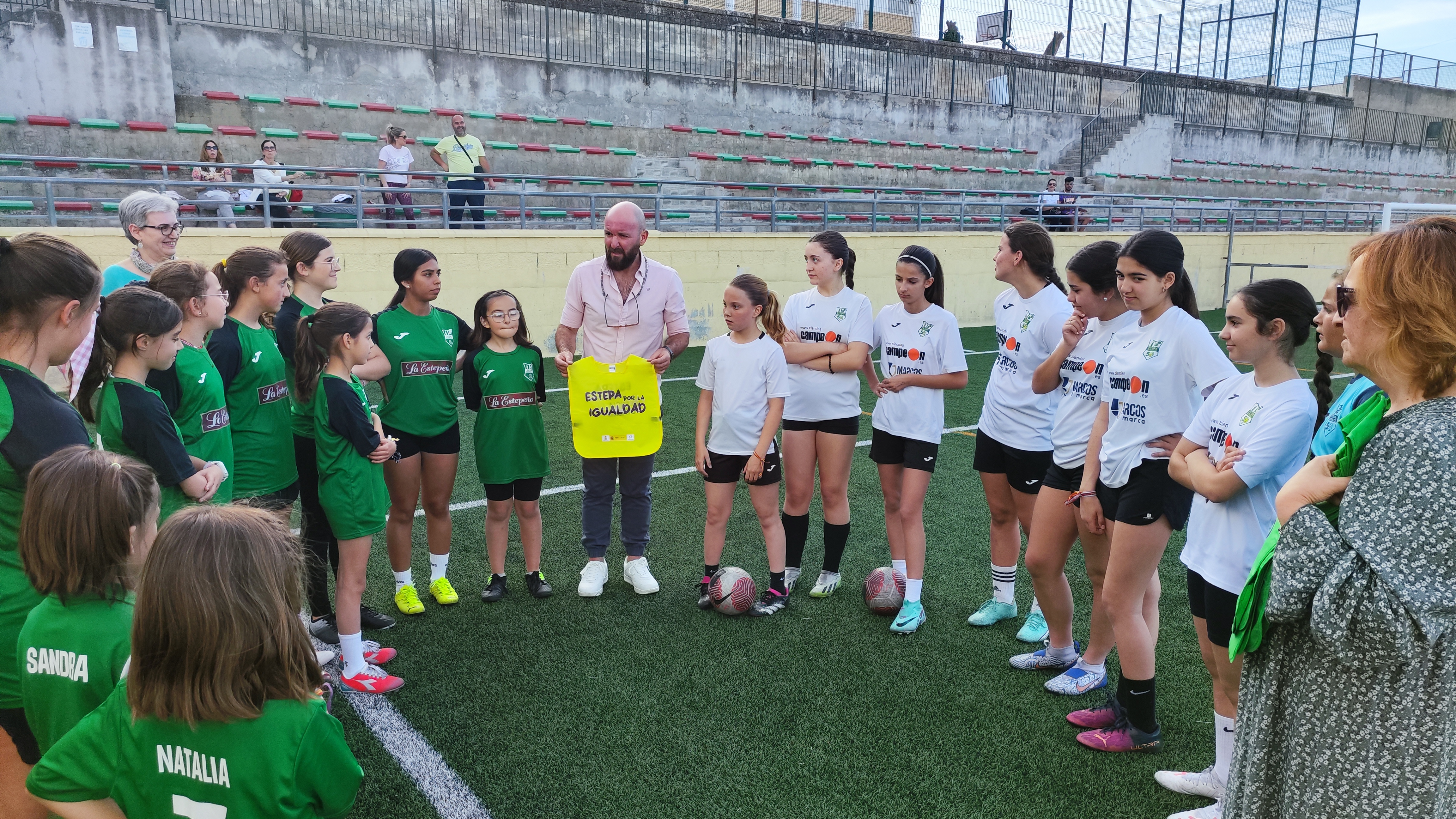Acto seguido se hizo entrega de unos petos deportivos a cada una de las jugadoras bajo los lemas Estepa por la Igualdad y Estepa contra la violencia de género.