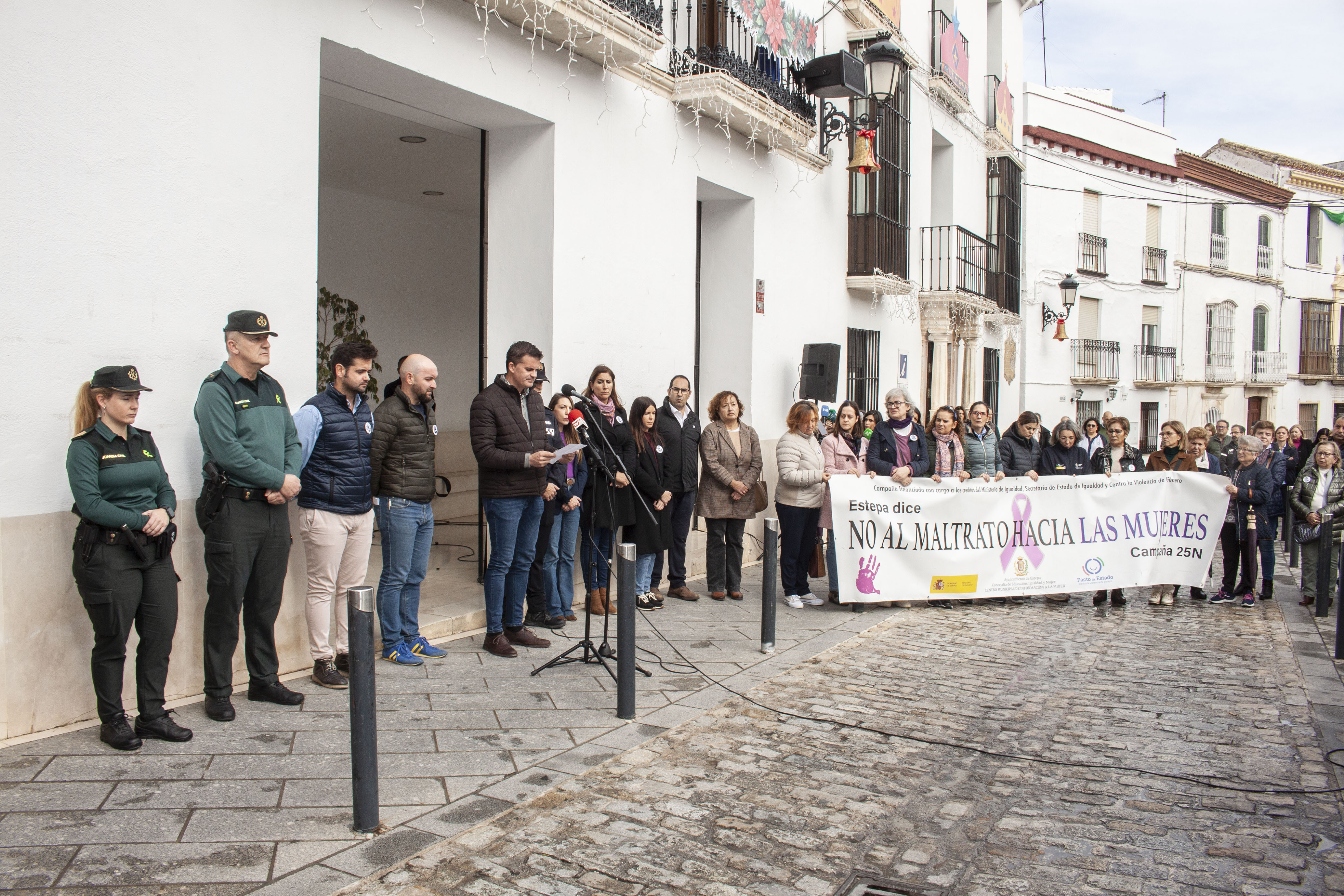 Este 25 de noviembre de 2024, Día Internacional contra la violencia hacia las mujeres, se ha convertido en Estepa en una nueva jornada de luto para toda la ciudad. Iniciamos el segúndo día de luto oficial y a las puertas de ayuntamiento ha tenido lugar una nueva concentración silenciosa con lecturas de manifiestos por parte del concejal de Igualdad y Mujer, Florencio Díaz Fernández y el alcalde, Antonio Jesús Muñoz Quirós.