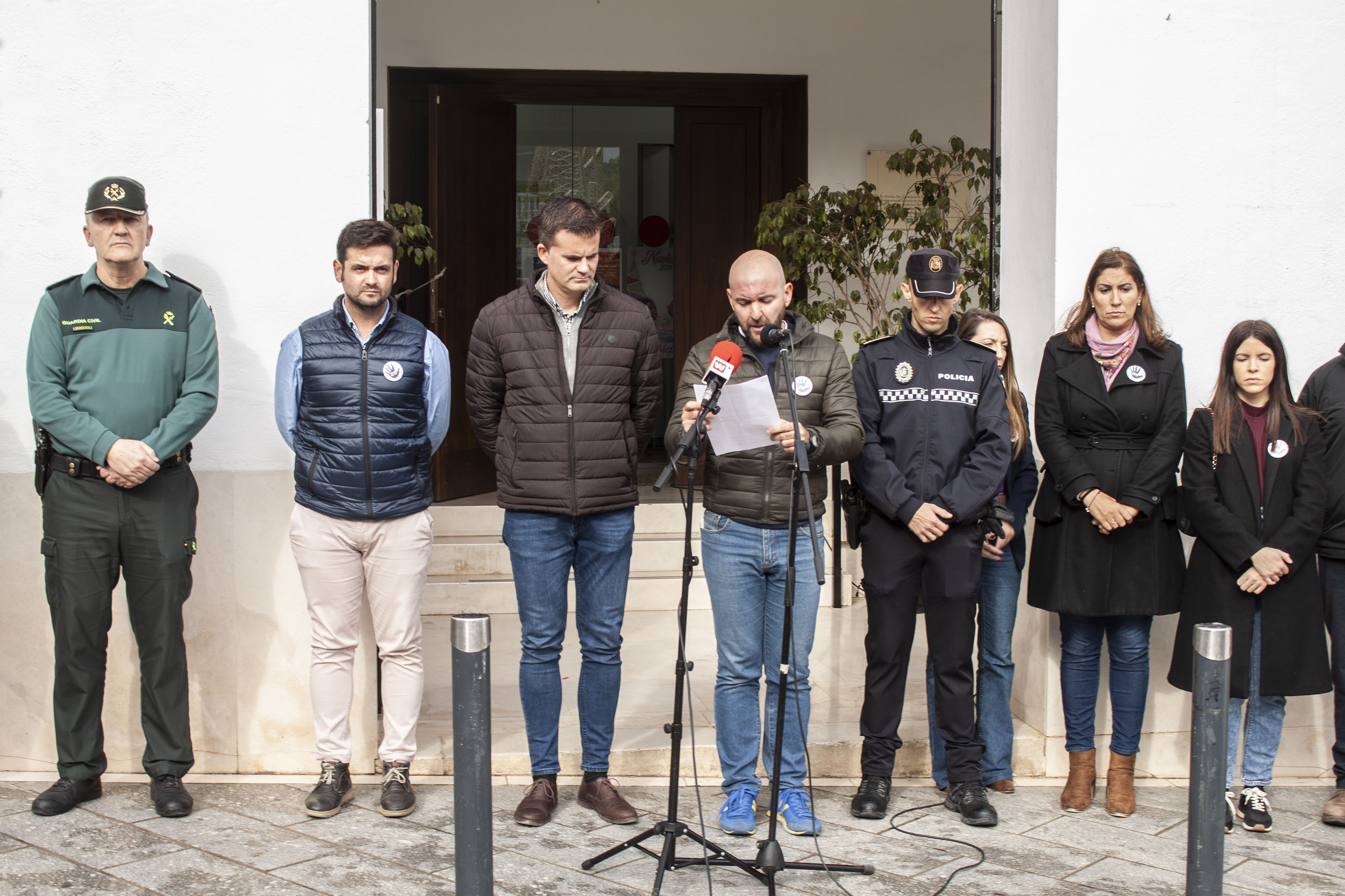 Autoridades como el capitán de la Guardia Civil, Diego Jesús Martín y el Jefe de la Policía Local, Francisco José Vargas. La Corporación Municipal también ha participado de esta jornada de luto y compromiso en contra de la violencia.