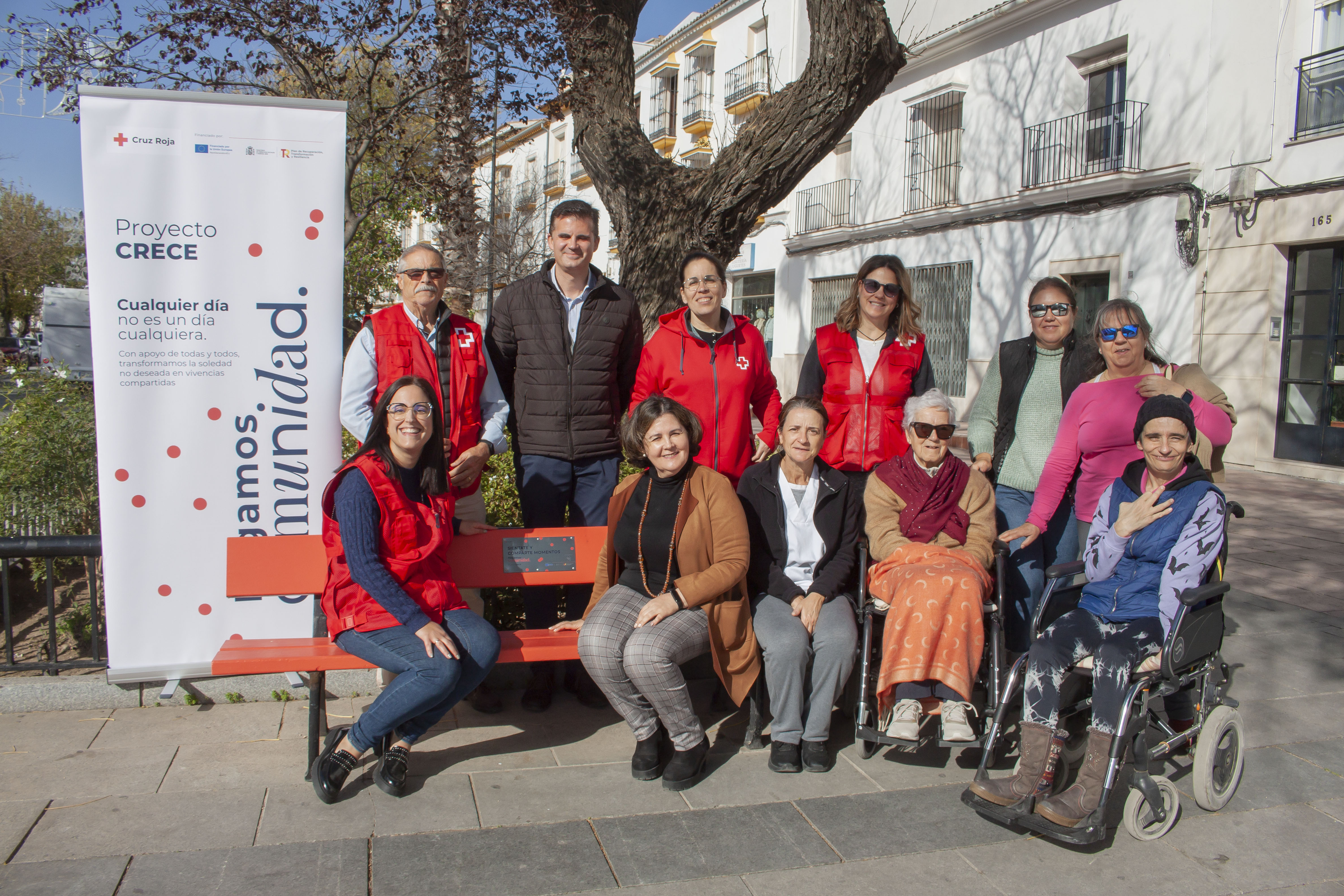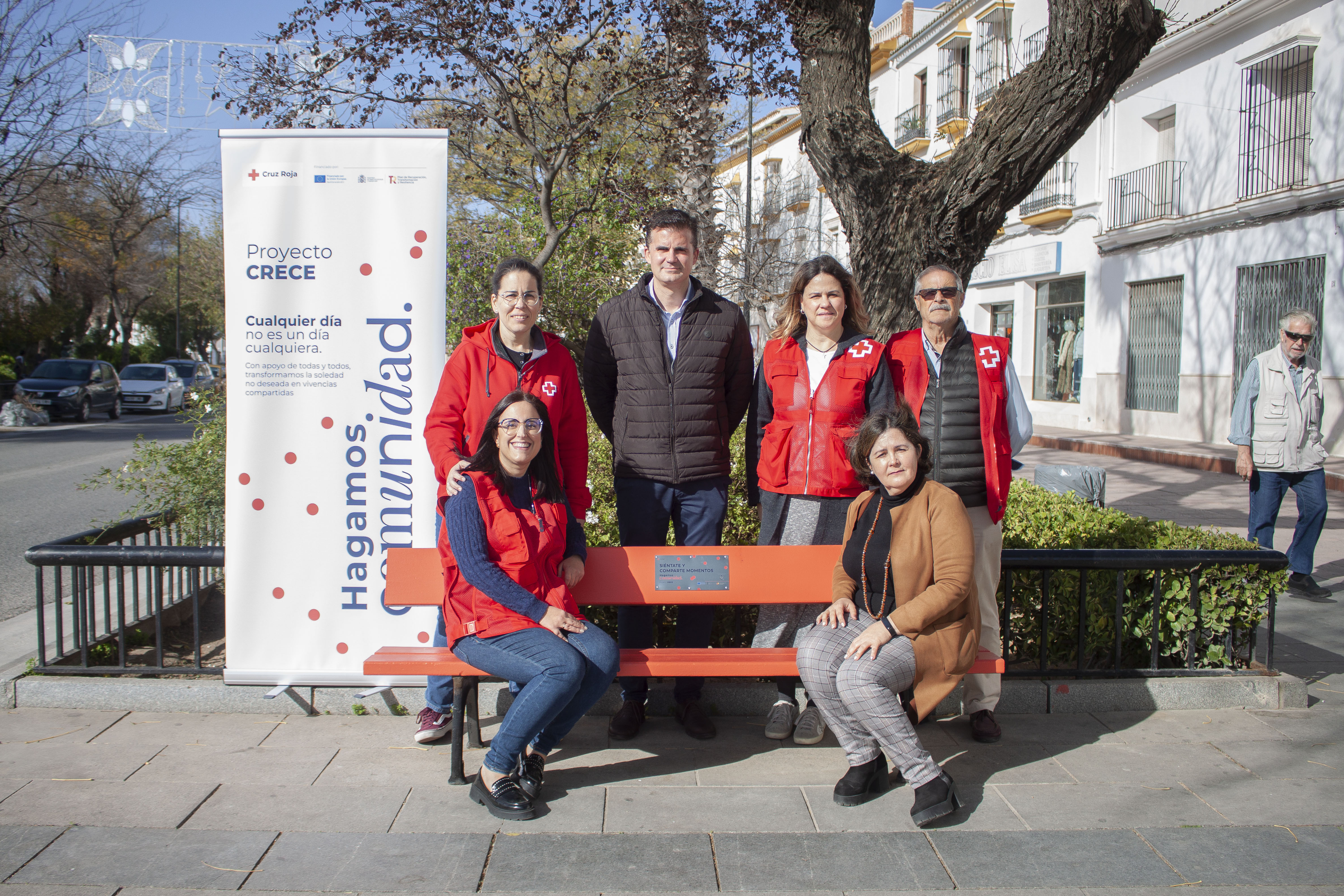 Como símbolo de este proyecto se ha instalado un banco para sentarse en plena avenida de Andalucía. El banco lleva colocada una placa con el mensaje: SIÉNTATE Y COMPARTE MOMENTOS -HAGAMOS COMUNIDAD.