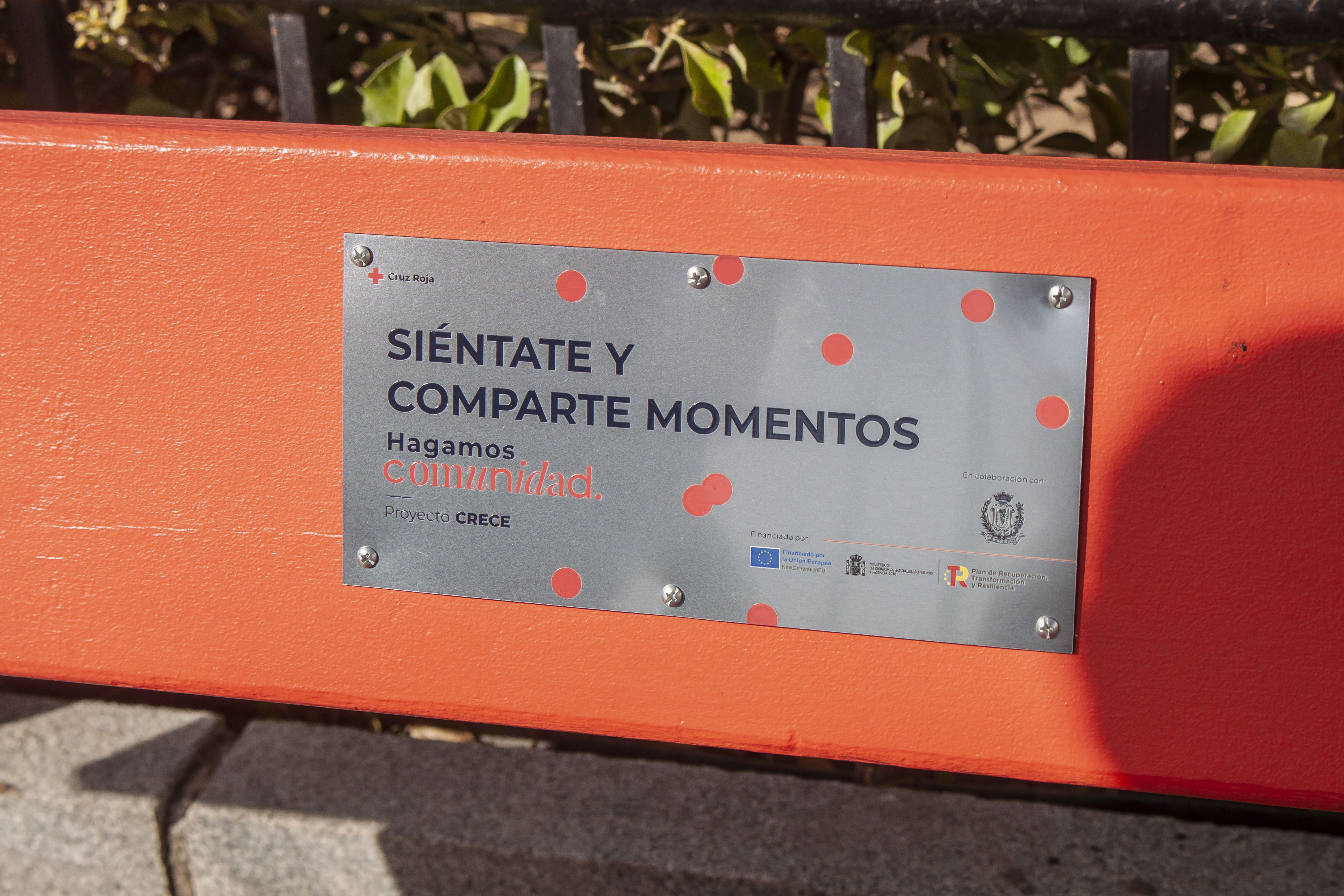 El banco está pintado de rojo para diferenciarlo del resto y hacer un llamamiento a su uso social por parte de todos. Cuando te sientes en el banco recuerda que hay personas que necesitan de una compañía, de una conversación y de un gesto fraternal.