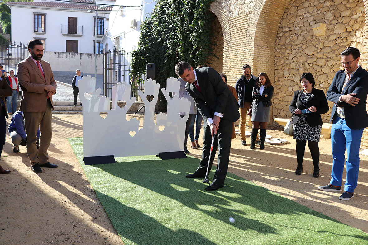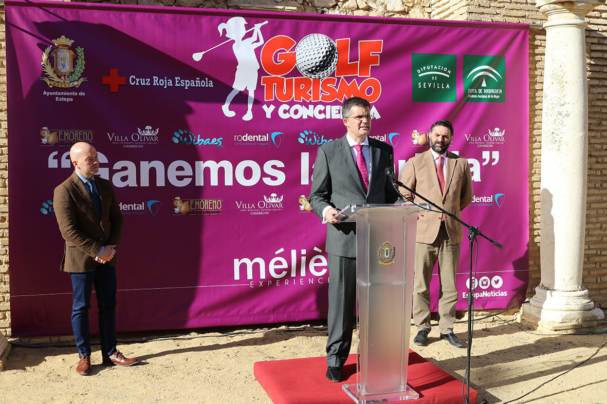 El consejero de Turismo Francisco Javier Fernández Hernández ha inaugurado esta mañana el evento deportivo del mes en Estepa, el Golf Turismo y Conciencia, un evento solidario y turístico que pone en valor el patrimonio de nuestra ciudad a través del deporte y de paso hace conciencia sobre la lucha contra la violencia de género.