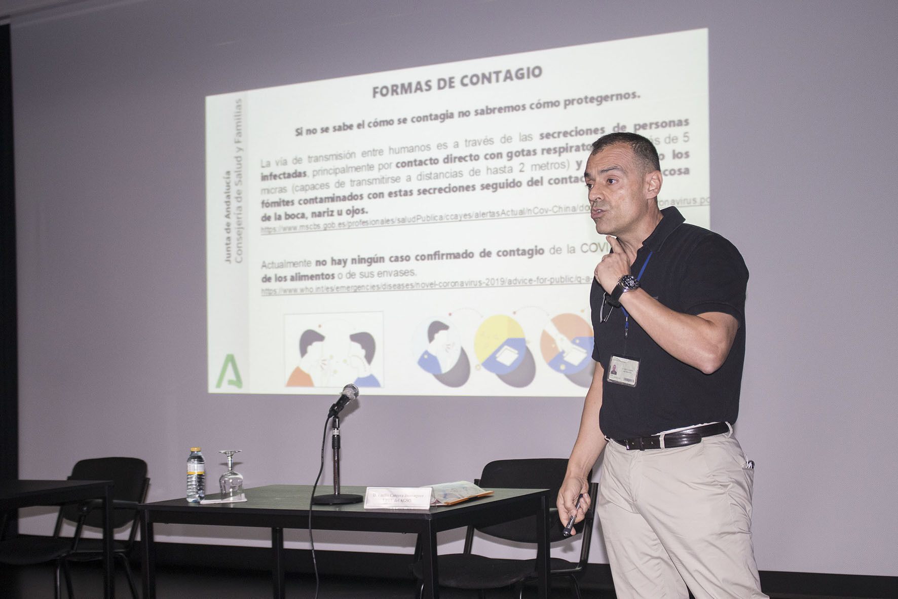 - Miguel Porras Povedano (Epidemiólogo del AGSO) del Área Sanitaria de Osuna, que ha contado su experiencia y la situación actual del Covid 19