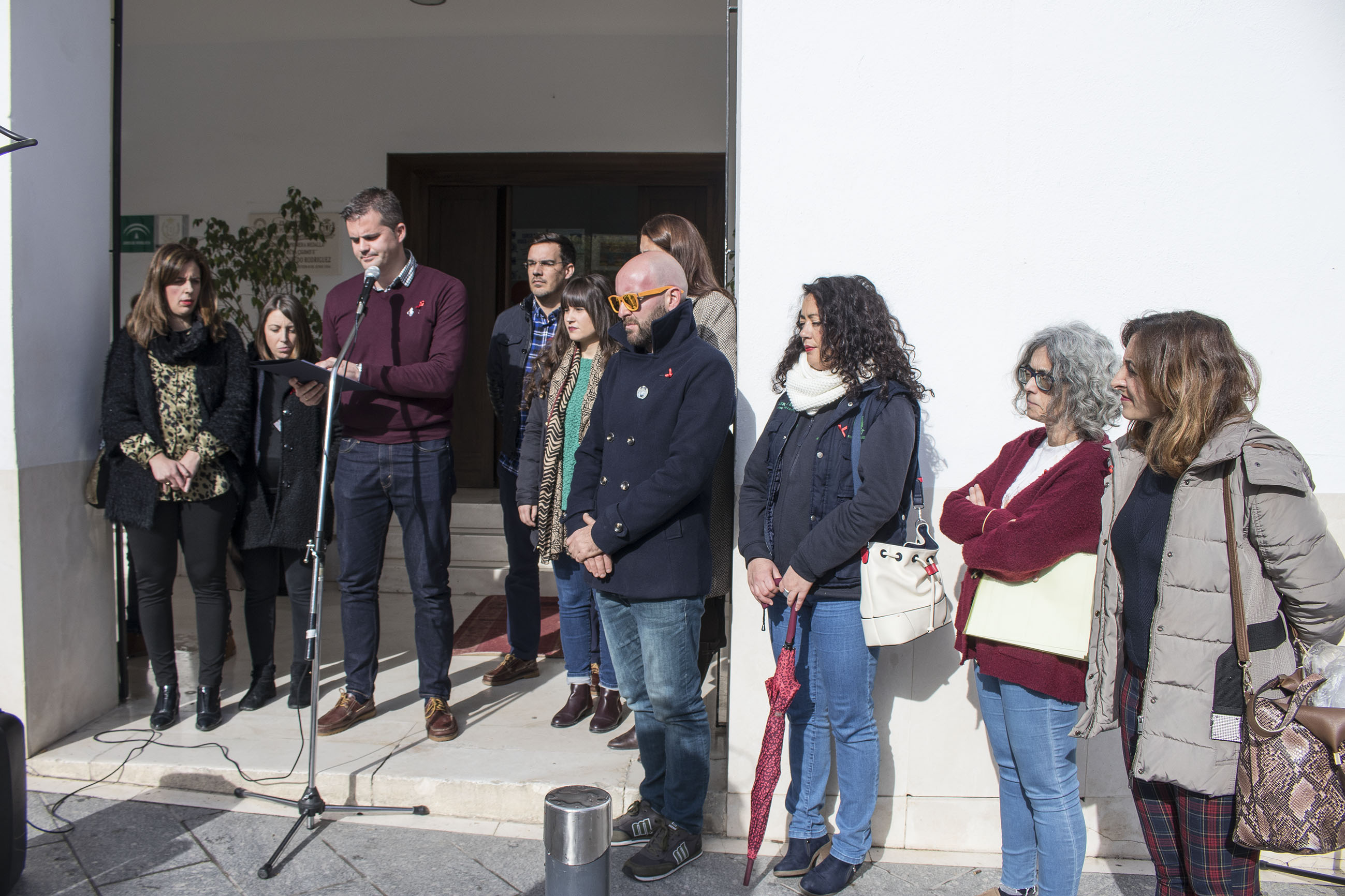 El alcalde de Estepa ha leído hoy un manifiesto en el que el pueblo de Estepa muestra su solidaridad en la lucha contra el SIDA. El equipo de gobierno ha acompañado este acto que se ha celebrado en la puerta del Ayuntamiento.