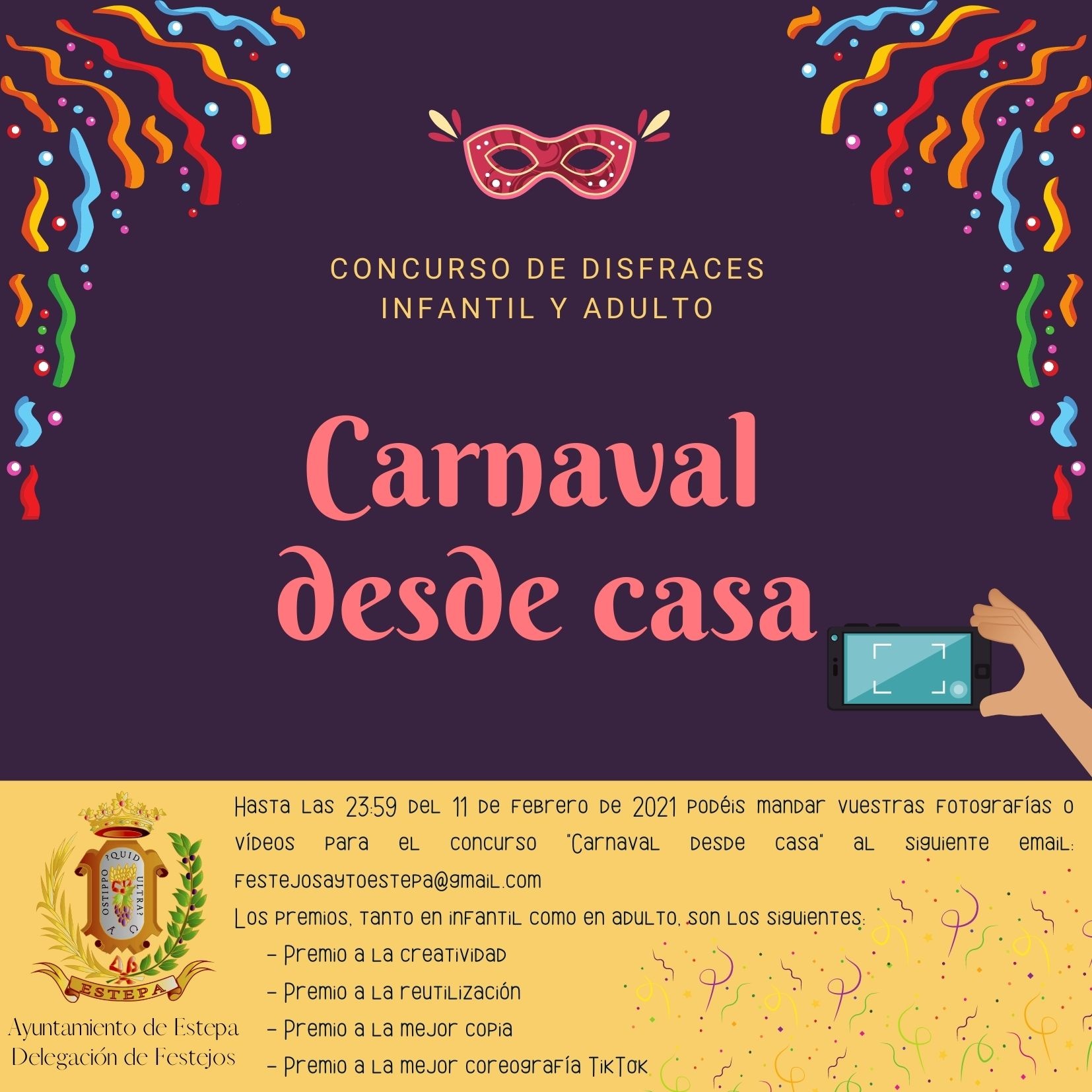 Desde la Delegación de Festejos del Ayuntamiento de Estepa queremos que, aunque de forma diferente, se pueda vivir el carnaval. Este año 2021 el carnaval se vivirá desde casa, disfrutando de las coplas y, como no, de los disfraces.