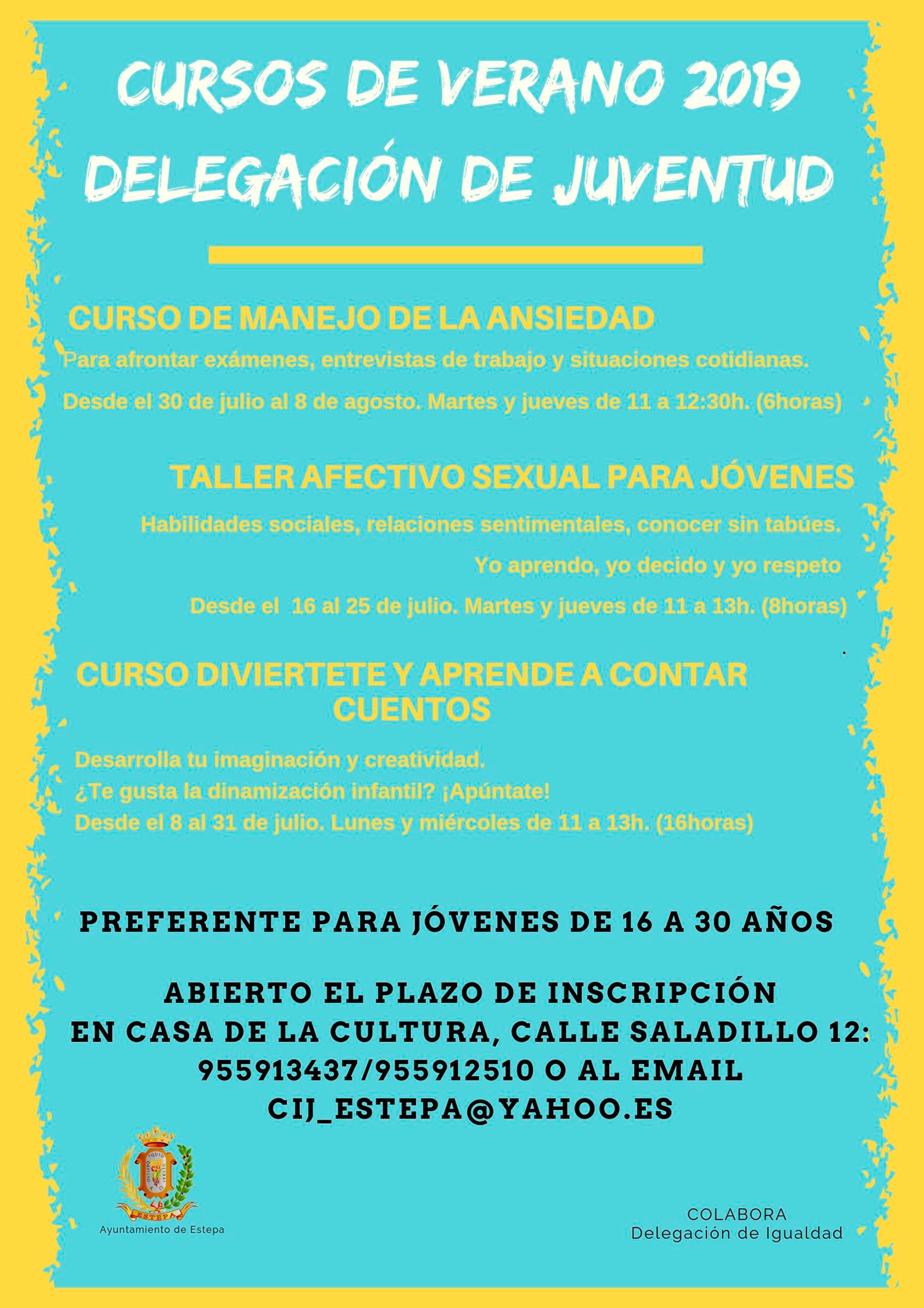 ABIERTO PLAZO DE INSCRIPCIÓN. Puedes apuntarte llamando a los teléfonos 955913437/955912510, pasándote por la Casa de la Cultura o por correo electrónico:cij_estepa@yahoo.es