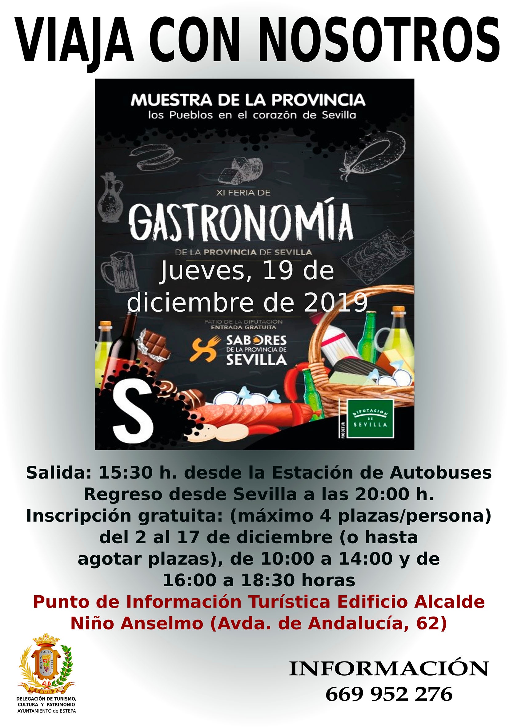 Inscripción gratuita: (máximo 4 plazas/persona) del 2 al 17 de diciembre (o hasta agotar plazas), de 10:00 h. a 14:00 h. y de 16:00 h. a 18:30 h. en el PUNTO DE INFORMACIÓN TURÍSTICA EDIFICIO ALCALDE NIÑO ANSELMO (Avda. de Andalucía, 62)