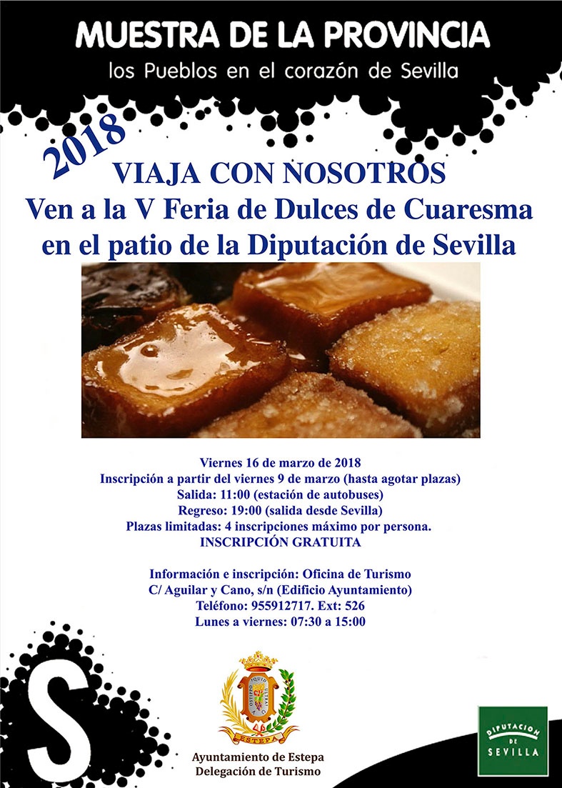Inscripción a partir del viernes 9 de marzo (hasta agotar plazas) en la Oficina Municipal de Turismo, C/Aguilar y Cano, s/n (Edificio del Ayuntamiento)