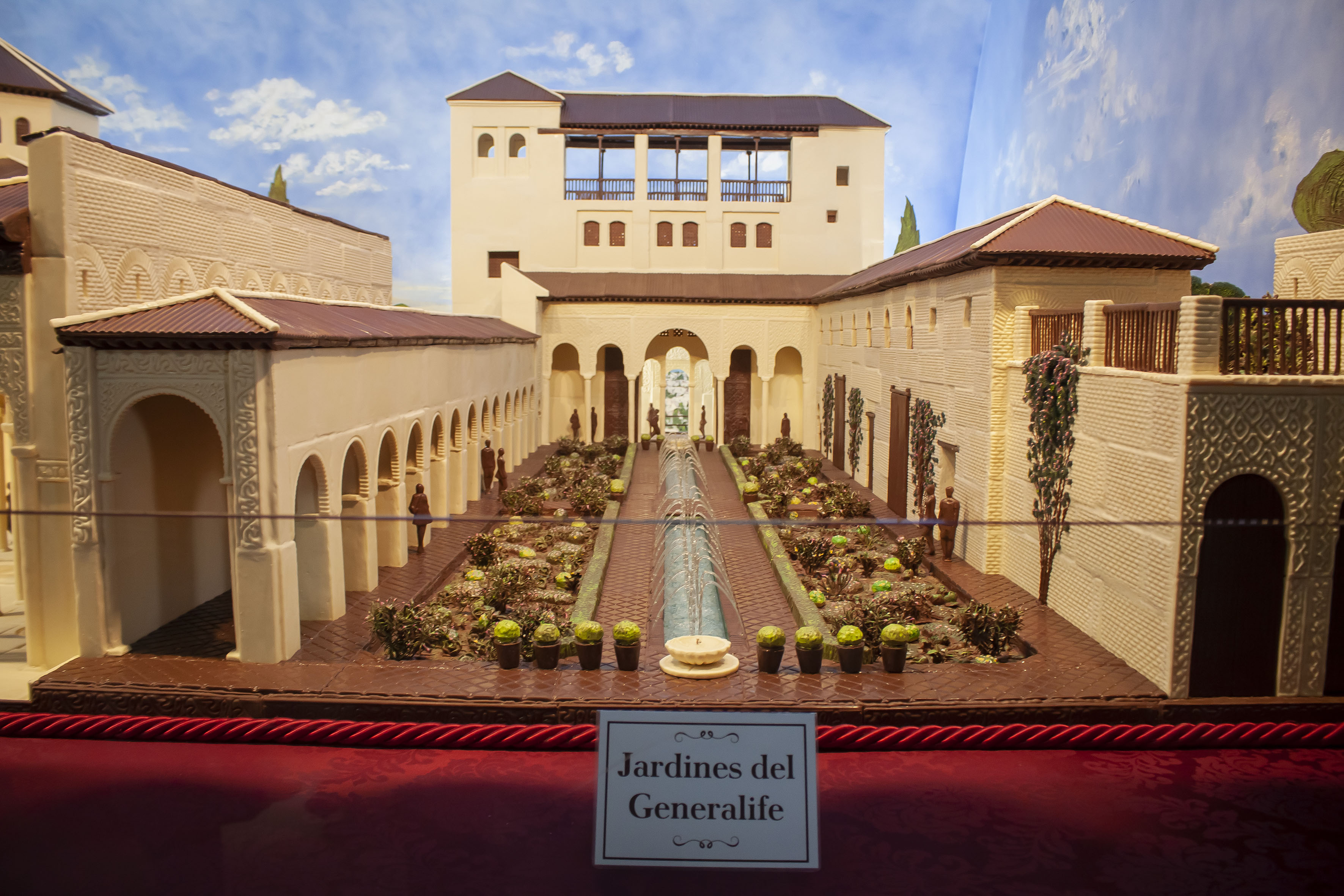 Este año le corresponde el turno a la ciudad de Granada y en concreto a La Alhambra. El monumento más visitado de España se puede contemplar ahora realizado en chocolate negro, chocolate con leche y chocolate blanco, además de almendras y caramelo, materiales que también se han usado en su elaboración.