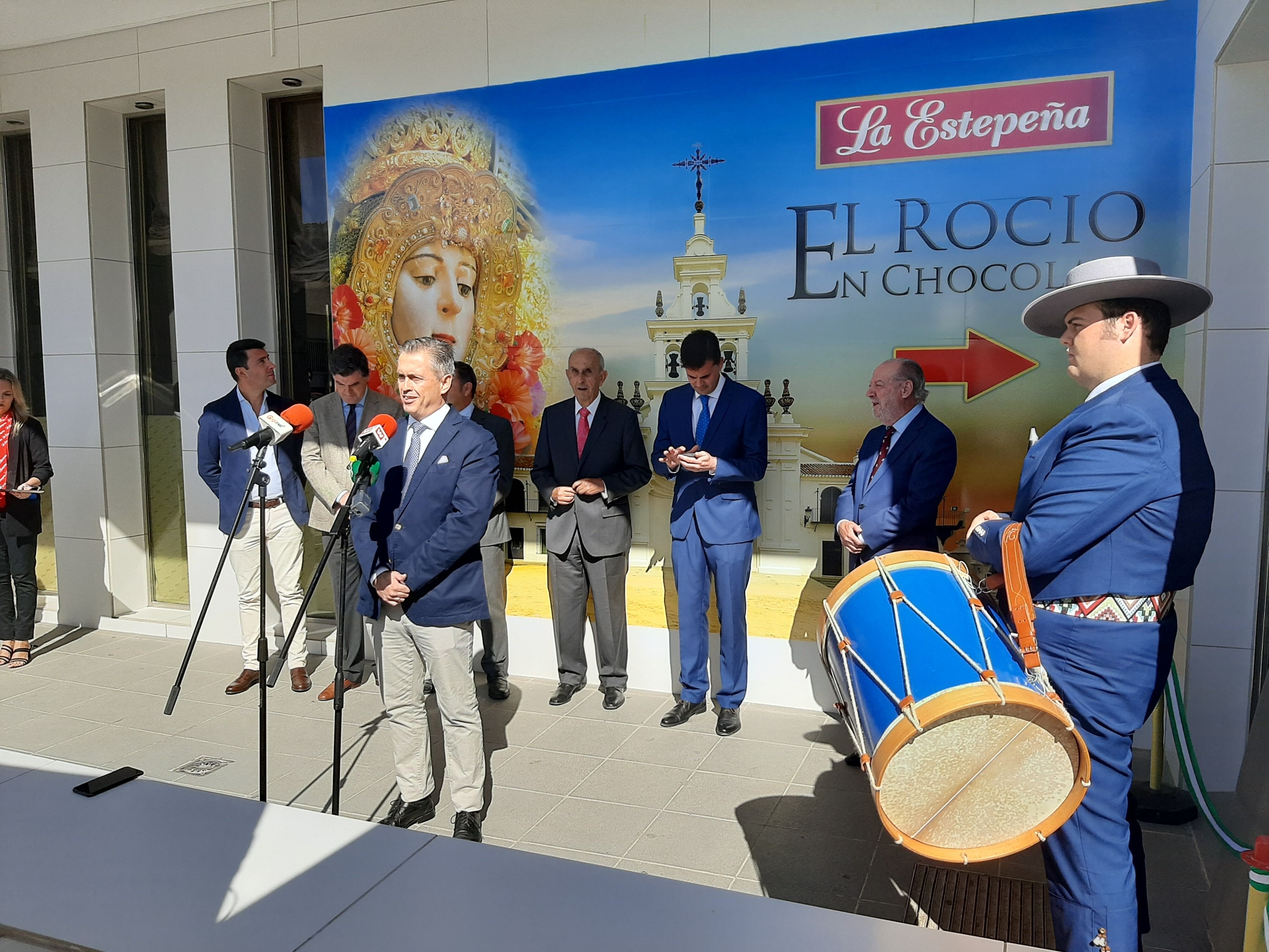 La fábrica de mantecados La Estepeña, ha presentado hoy su nueva creación en chocolate. En este año 2022, la ciudad del chocolate presenta la aldea de El Rocío. 2000 kilos de chocolate negro, con leche y blanco, se han utilizado para recrear la conocida aldea de El Rocío, donde cada año la imagen de la virgen del mismo nombre, sale en romería por el mes de mayo.