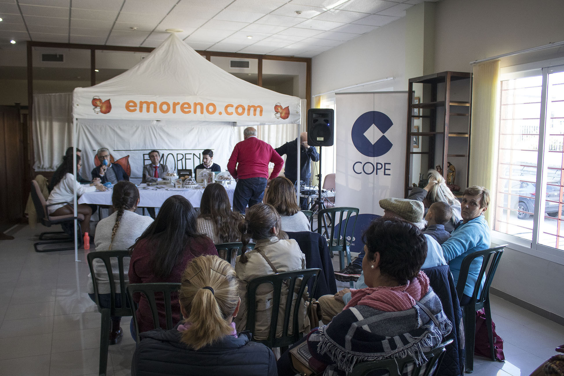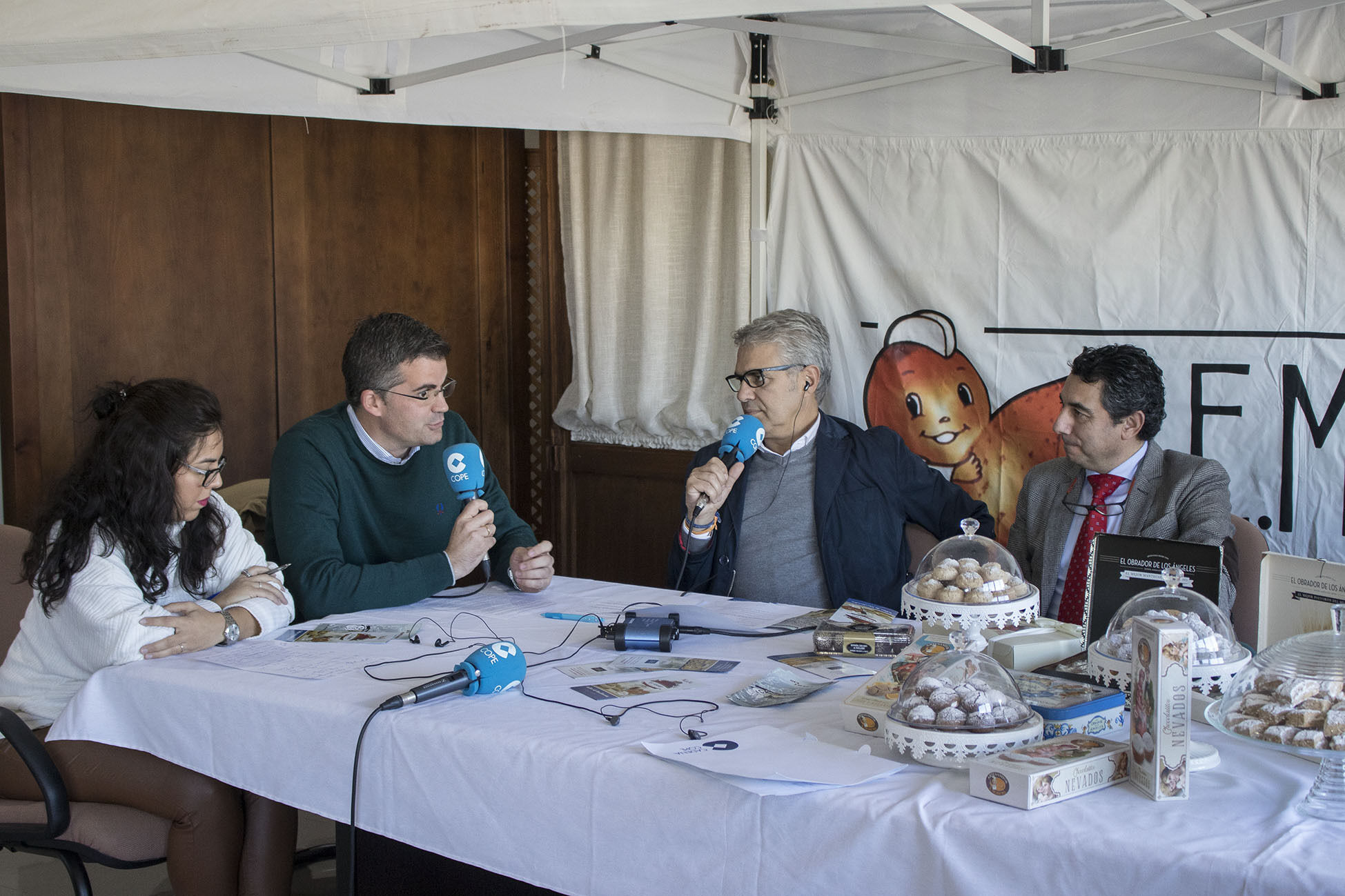 La familia Enrique Moreno, que dirige las marcas Los Artesanitos, EMoreno, Dulcestepa y El Gamo, han invitado hoy al equipo de Gobierno del Ayuntamiento de Estepa a asistir al programa realizado en directo desde sus instalaciones en el polígono industrial. El programa Herrera en la Cope que ha dirigido el periodista Agustín Bravo ha pasado la jornada con las mantecaderas de Enrique Moreno. El propio Enrique Moreno narraba sus orígenes con la fábrica que alquiló su padre y su recorrido empresarial hasta hoy, donde conforman una empresa familiar formada por sus cinco hermanos y la nueva generación que ya arrima el hombro a la empresa. El grupo E Moreno mantiene en campaña una plantilla de doscientas personas trabajando en sus diversas instalaciones.
